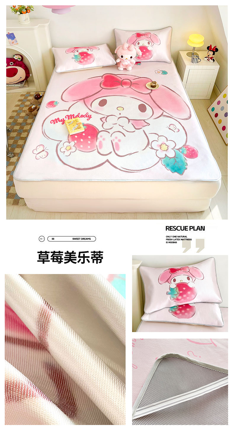 商品名称:米帛家纺 2025新款 A类大版三丽鸥冰藤席-床席款 草莓美乐蒂
