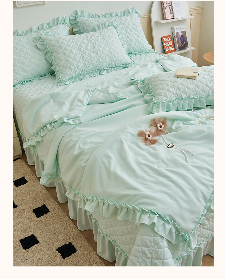 商品名称:恒爱家纺 2025新款针织棉立体扶桑花夏被床盖四件套 淡海蓝