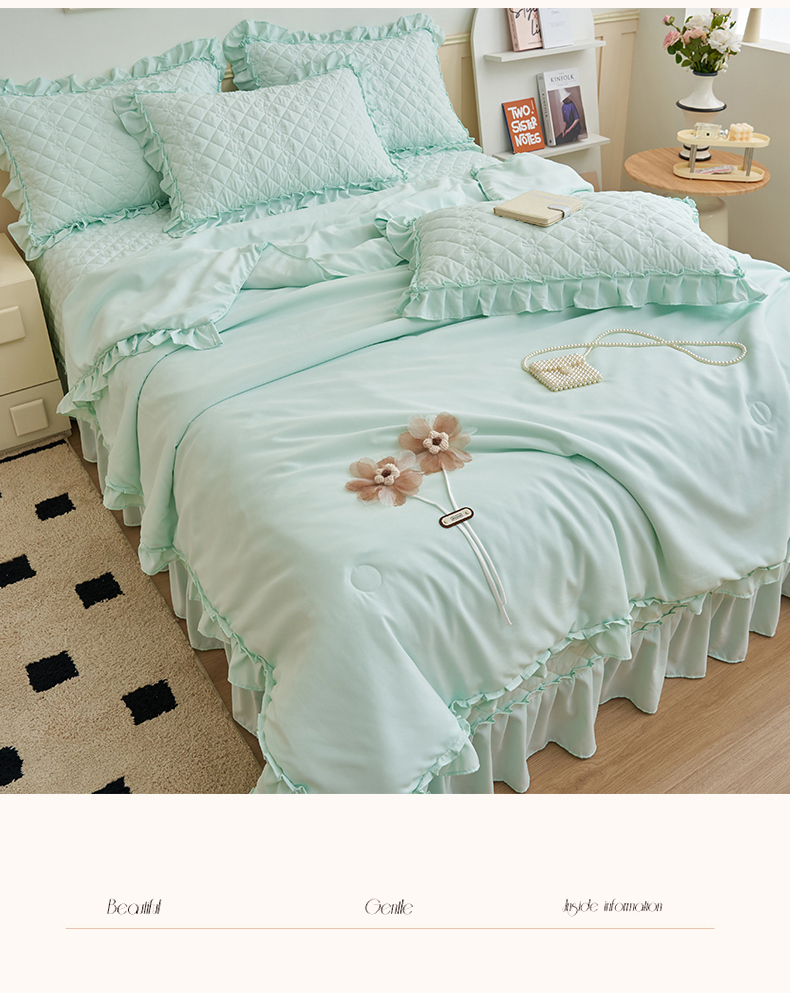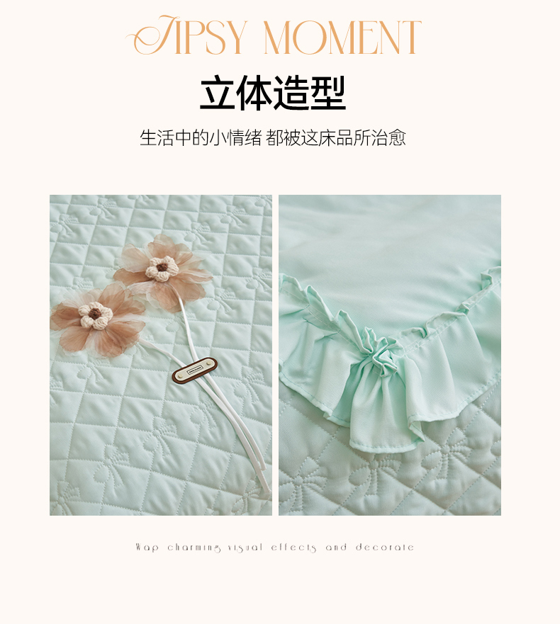 恒爱家纺 2025新款针织棉立体扶桑花夏被床盖四件套 淡海蓝