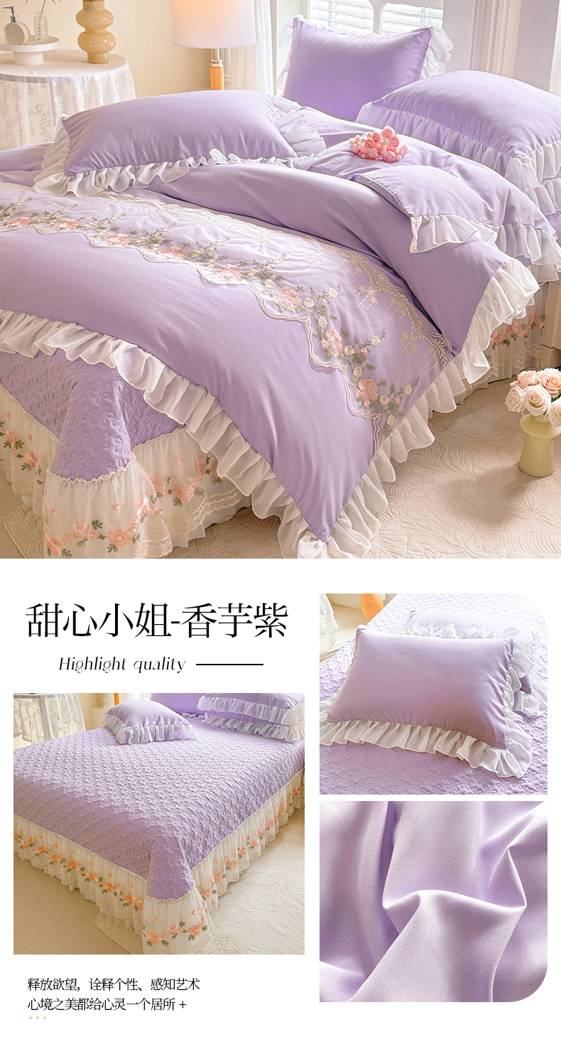 商品名称:大麦家纺2025新款年新款亲肤花边款床盖四件套 甜心小姐-香芋紫