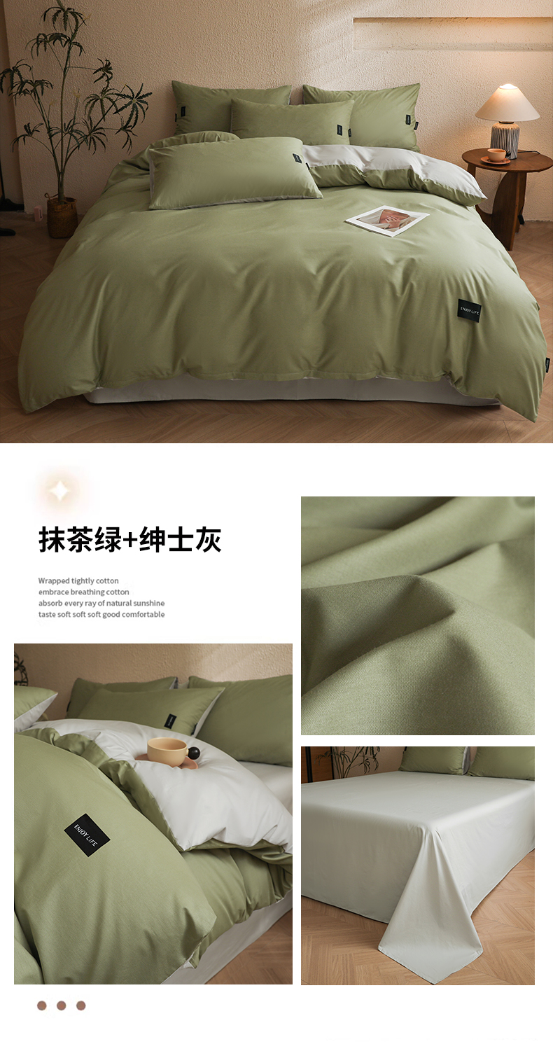 商品名称:(总)启程2025新款全棉纯色双拼无印风四件套