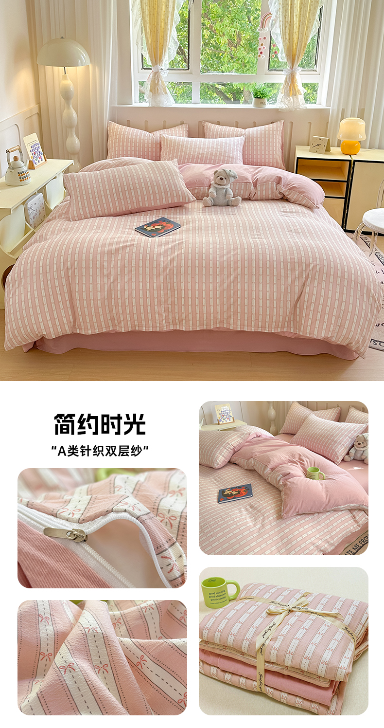 当前位置: 91家纺网 > 商品网购 > 床品套件 > 四件套 > 其它四件套 > 玖明2025新款A类加厚柔软针织棉双层纱四件套 简约时光