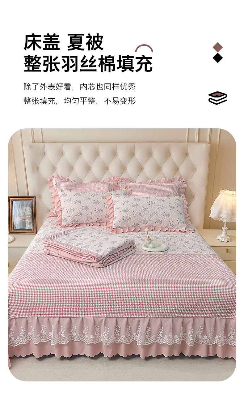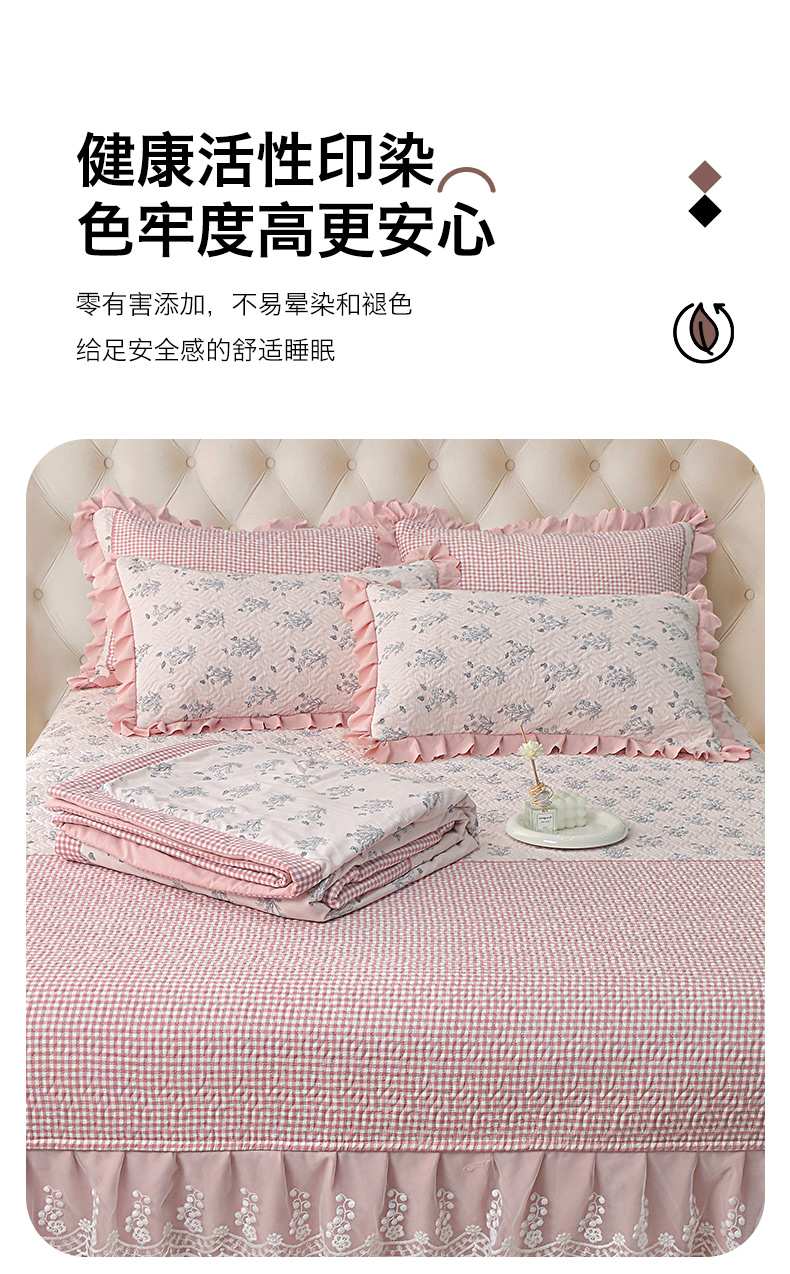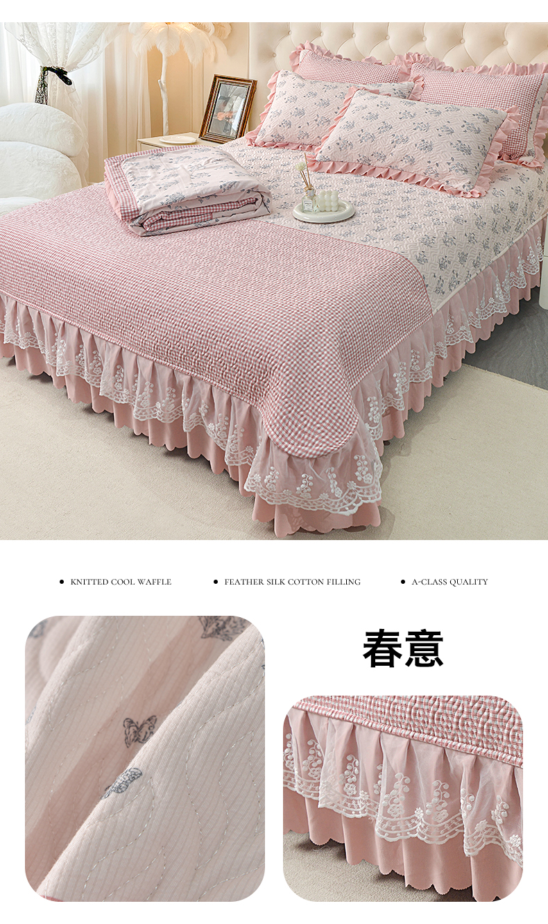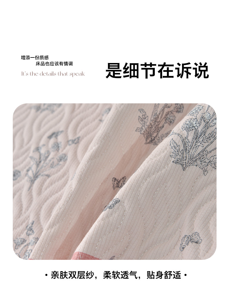当前位置: 91家纺网 > 商品网购 > 床品套件 > 四件套 > 夏被四件套 > 梦柏 2025新款韩版双层纱夹棉绗缝床盖夏被四件套 春意