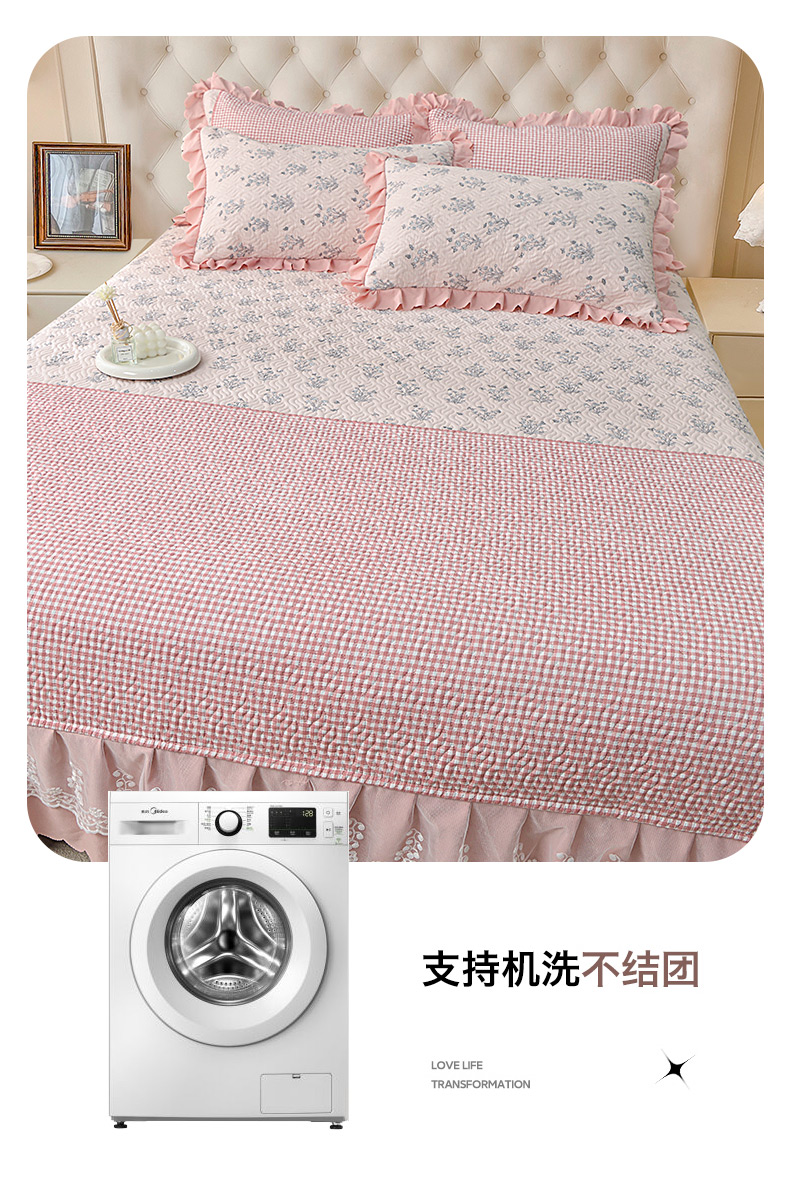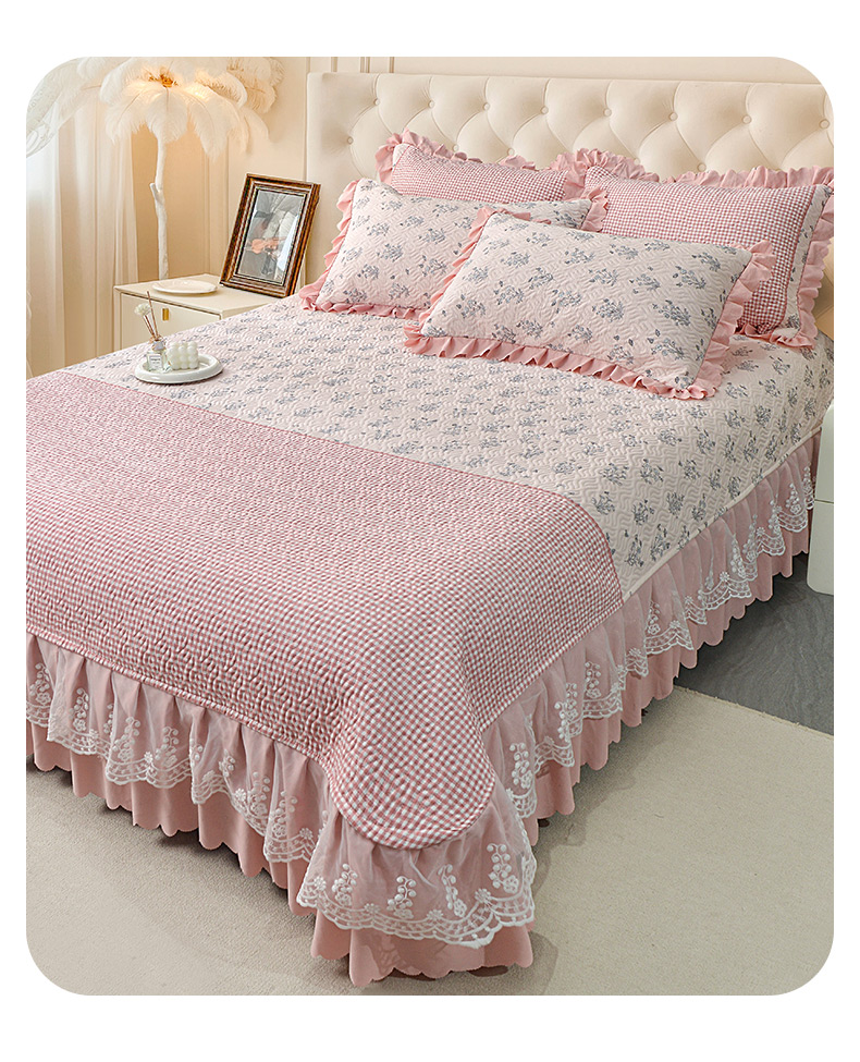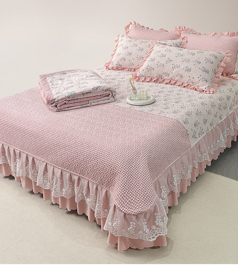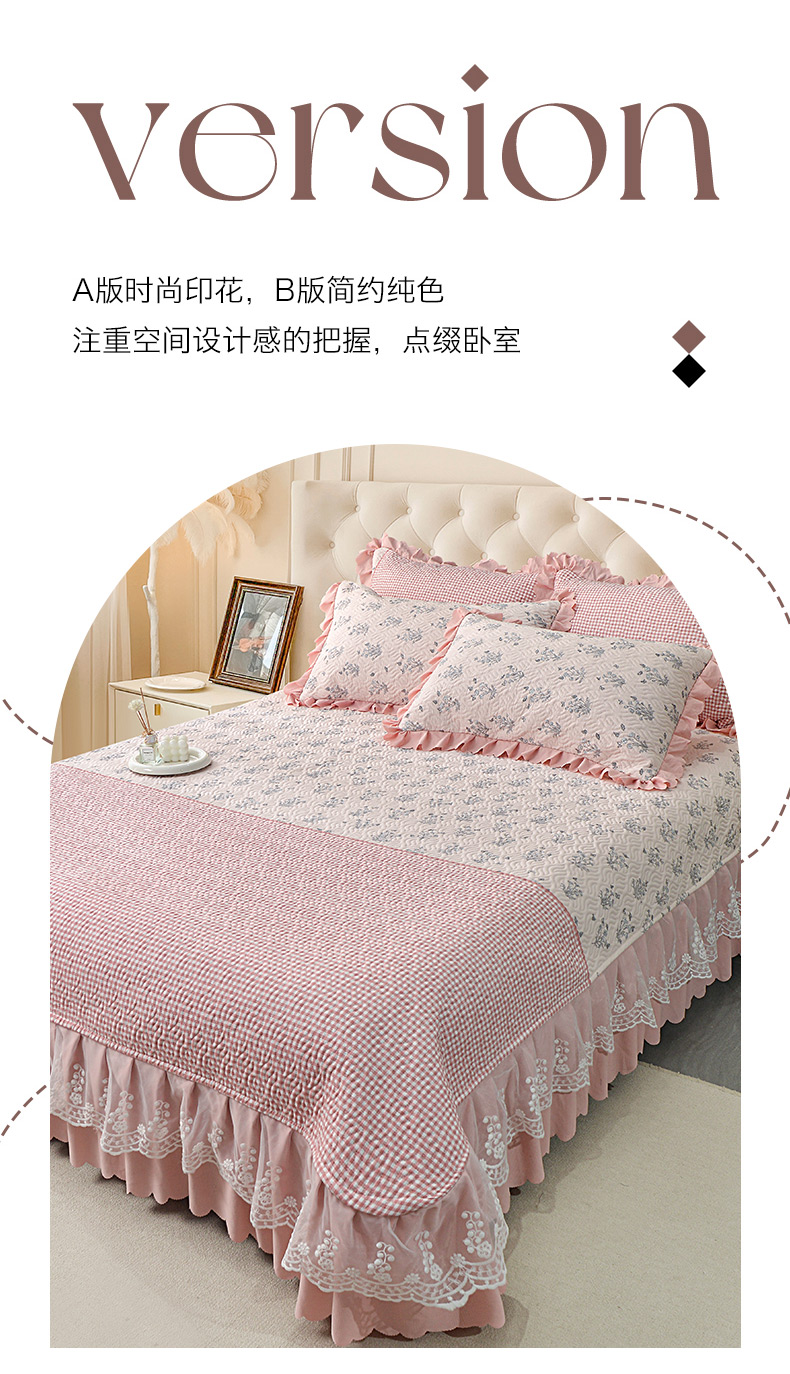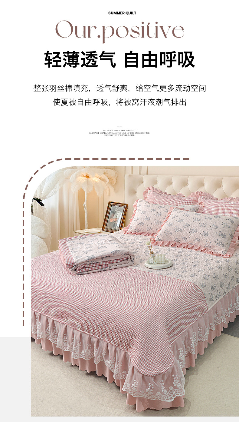 当前位置: 91家纺网 > 商品网购 > 床品套件 > 四件套 > 夏被四件套 > 梦柏 2025新款韩版双层纱夹棉绗缝床盖夏被四件套 春意