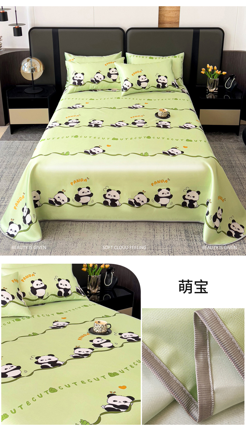 商品名称:纽缦家纺 2025新款印花冰丝防滑床单 萌宝