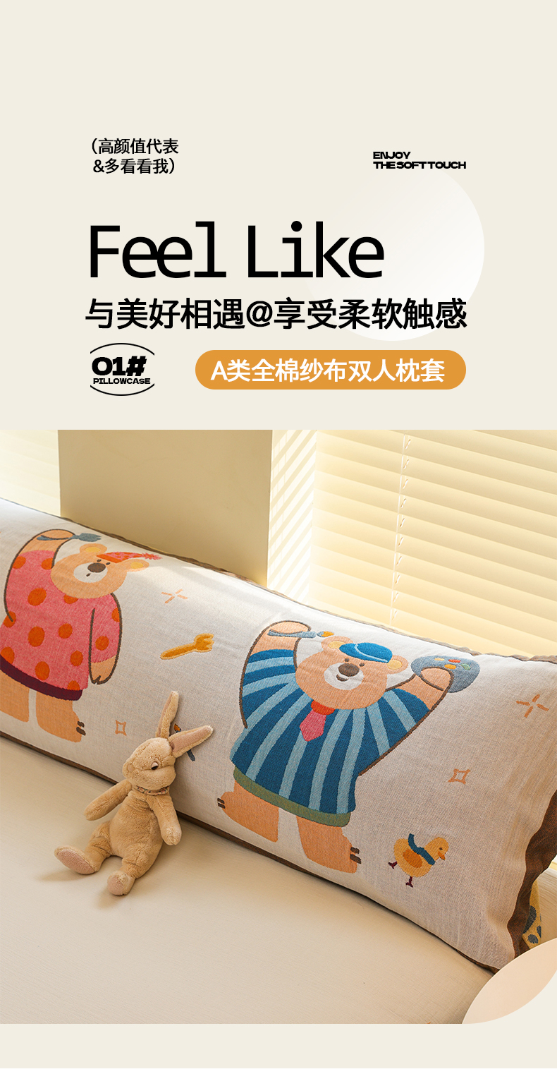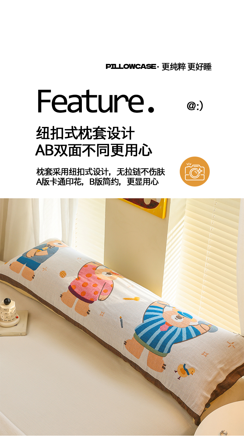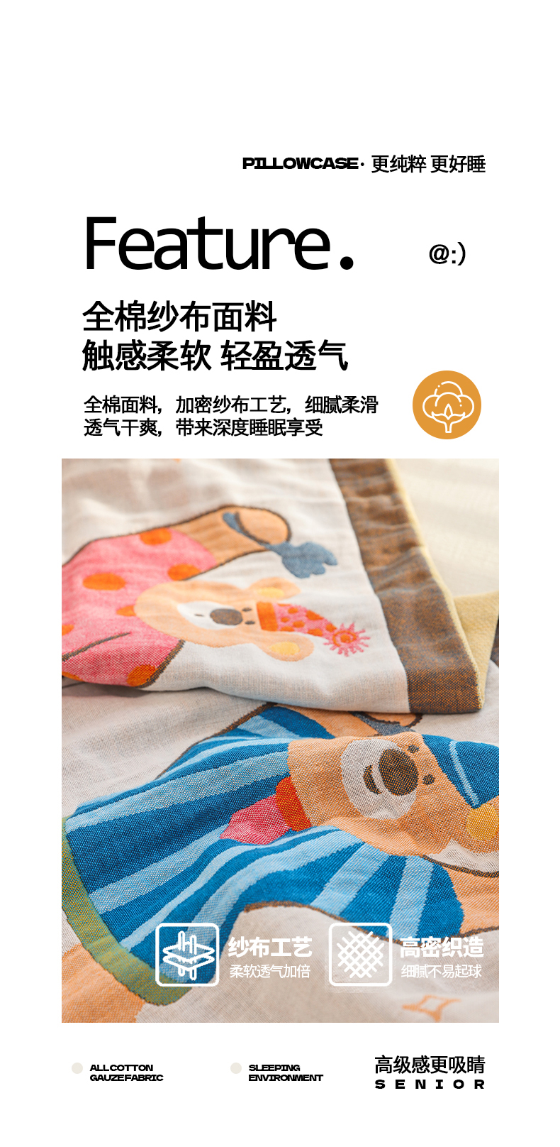 商品名称:雯雨2025新款A类卡通双人纱布枕套 开心小熊