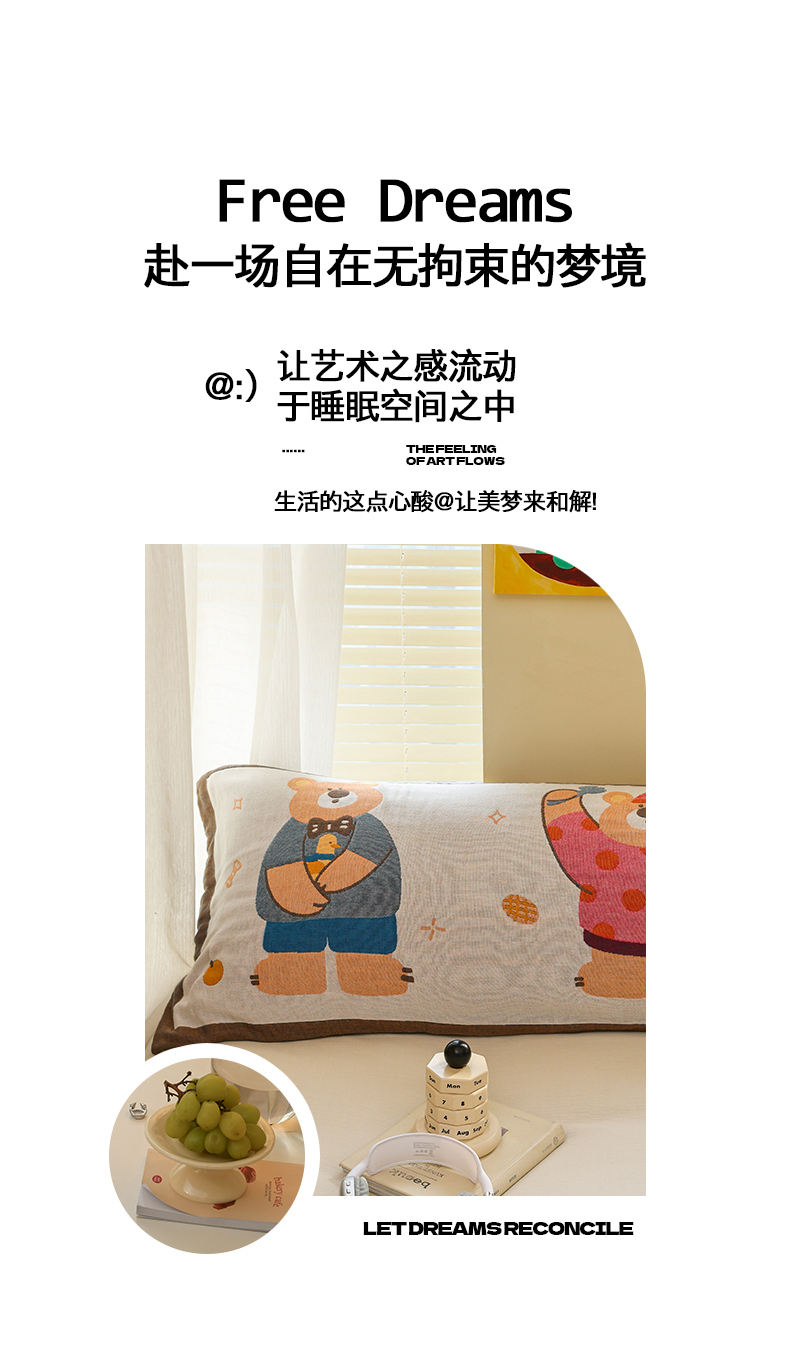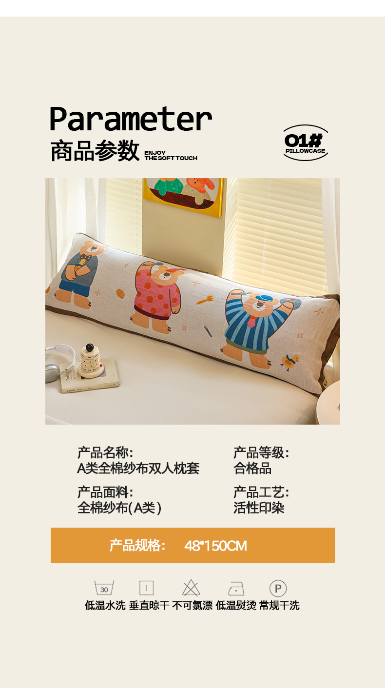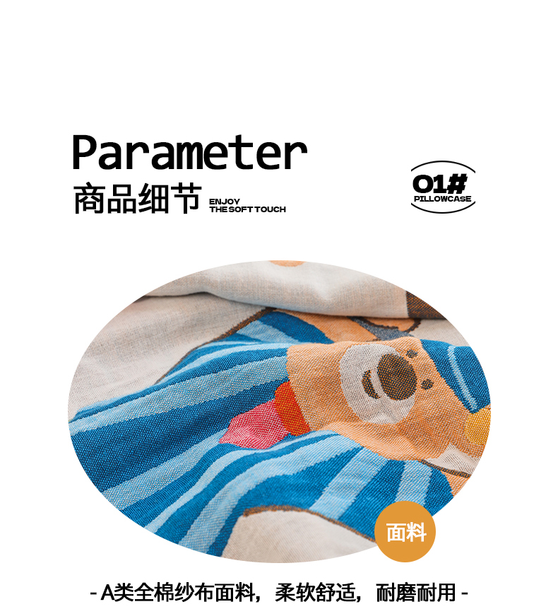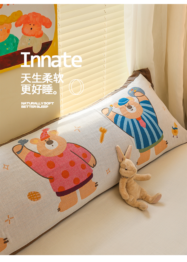 商品名称:雯雨2025新款A类卡通双人纱布枕套 开心小熊
