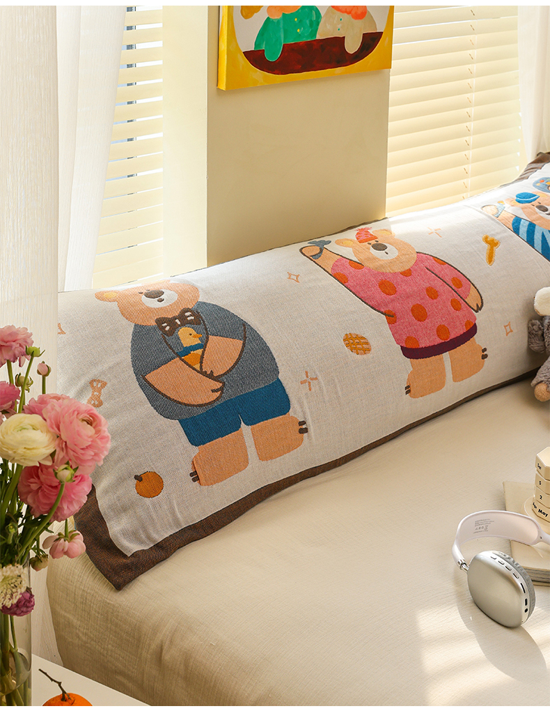 雯雨2025新款A类卡通双人纱布枕套 开心小熊