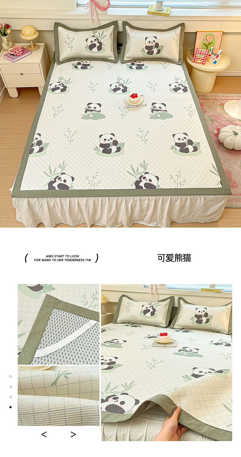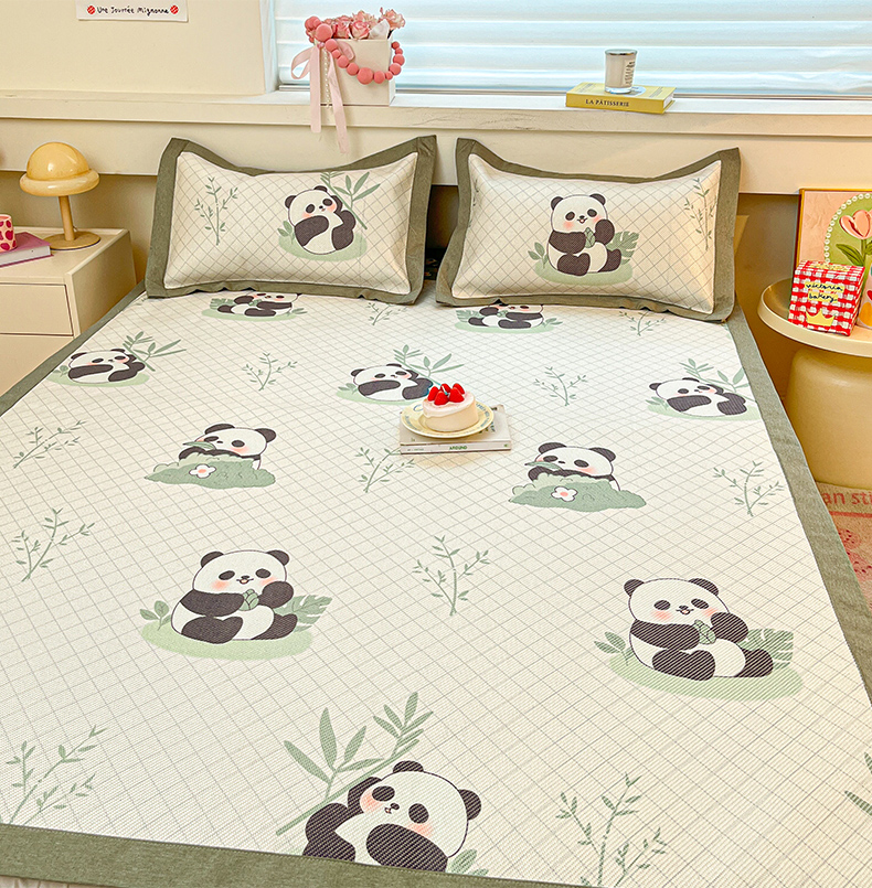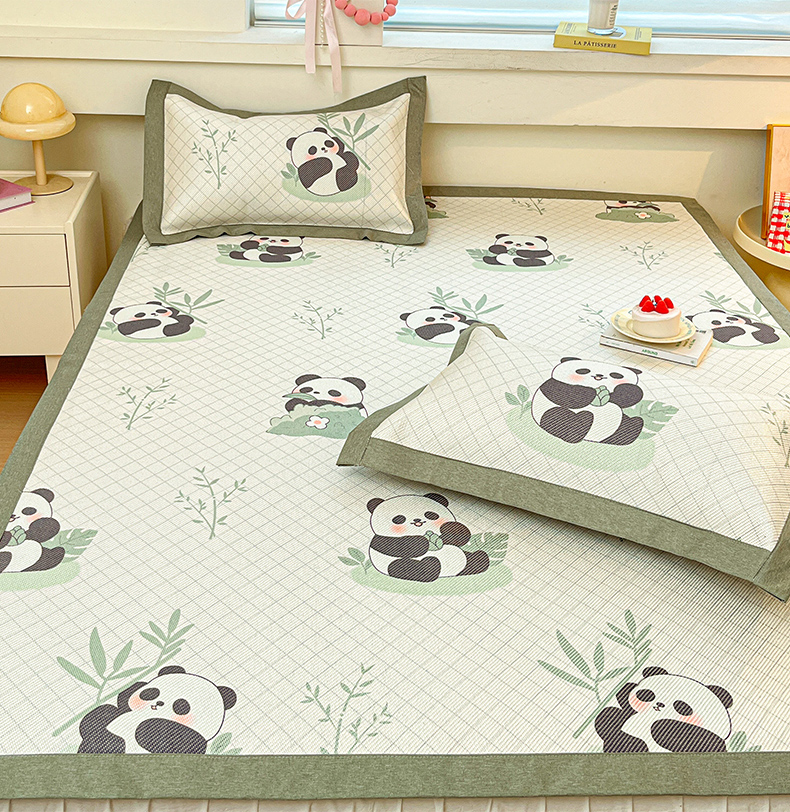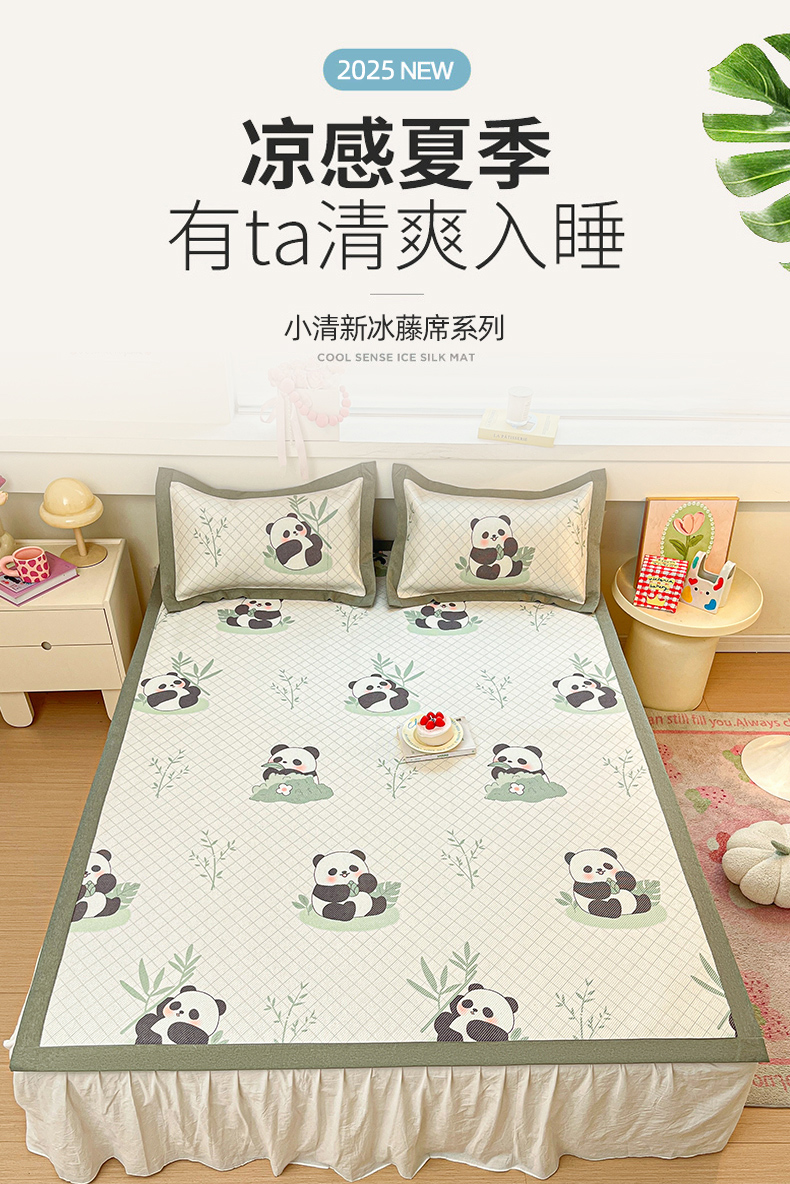 商品名称:花言狐语 2025新款印花真冰藤冰凉席 可爱熊猫