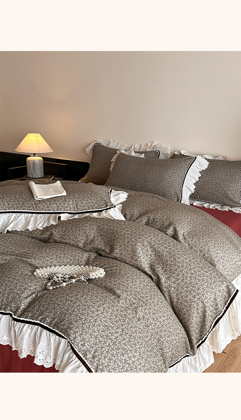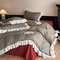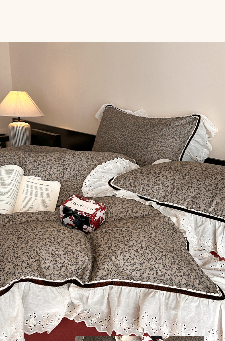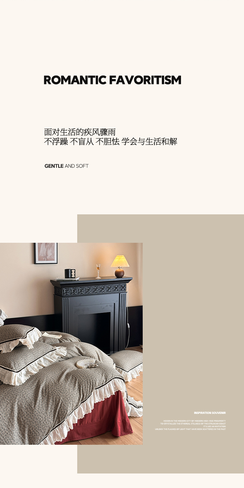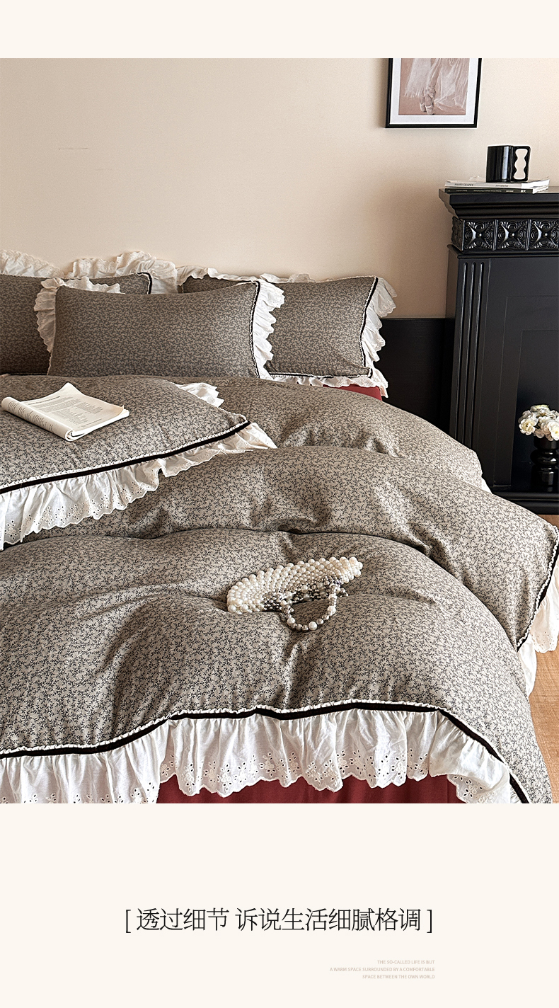 蓝邻家纺 2025春夏新款全棉纯棉复古双层纱花边织带款四件套 春风细叶