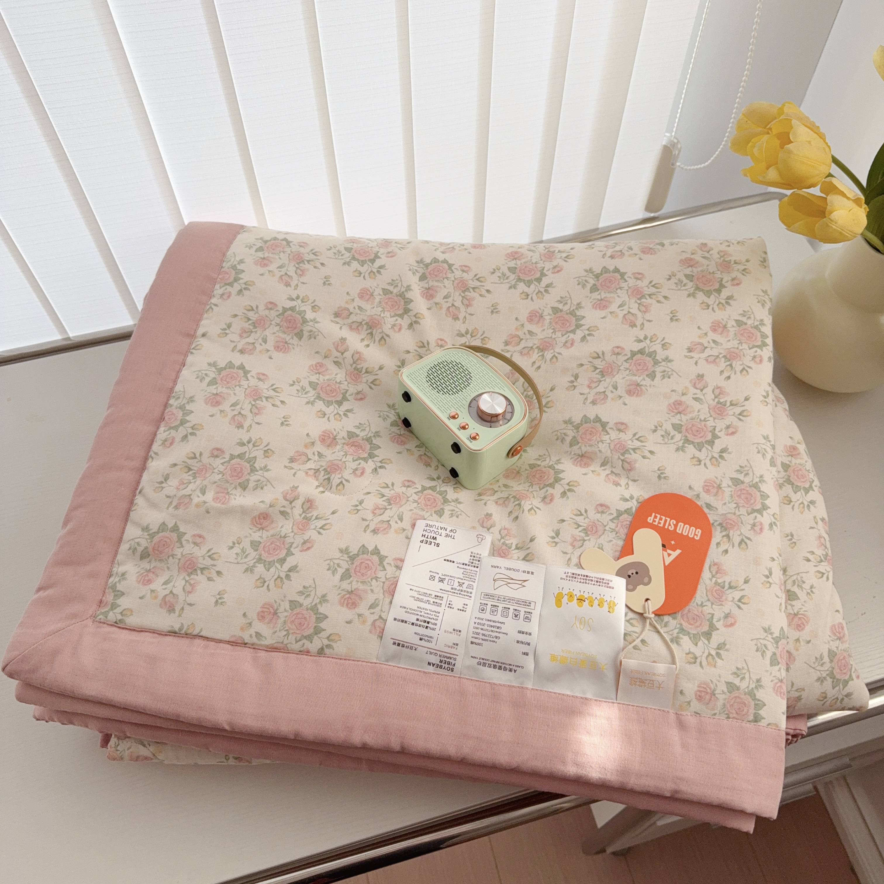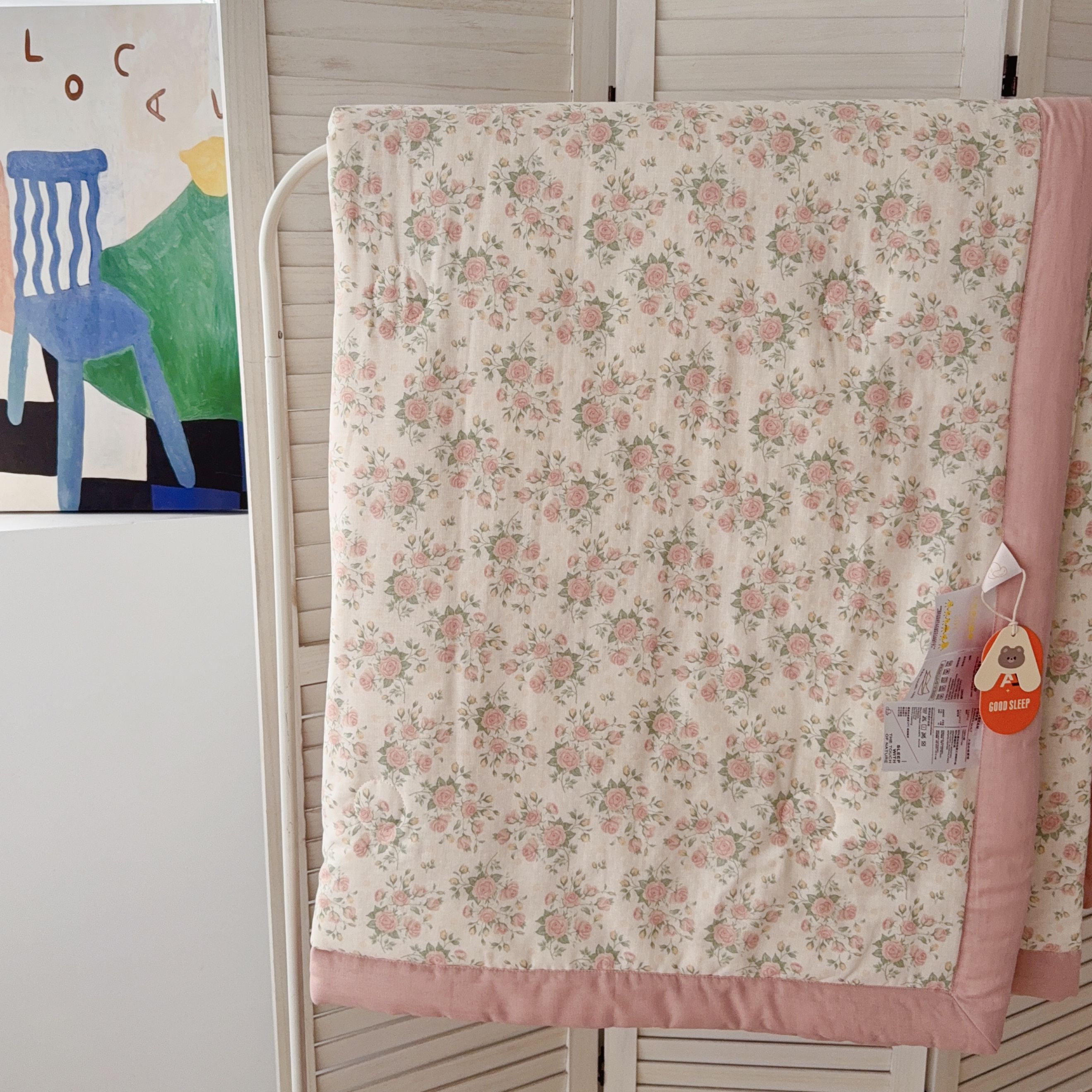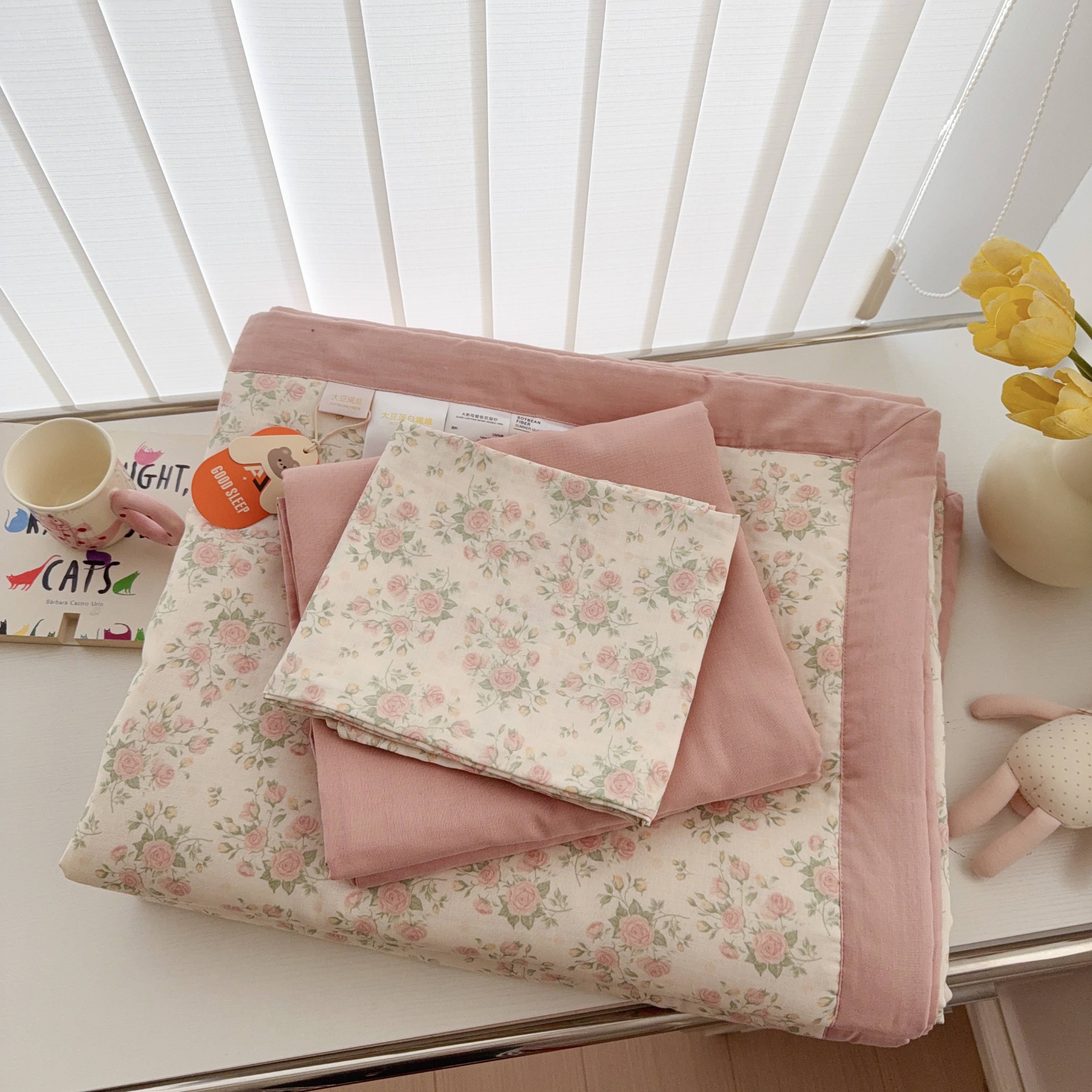 商品名称:于果 2025新款全棉双层纱夏被四件套 玫瑰米