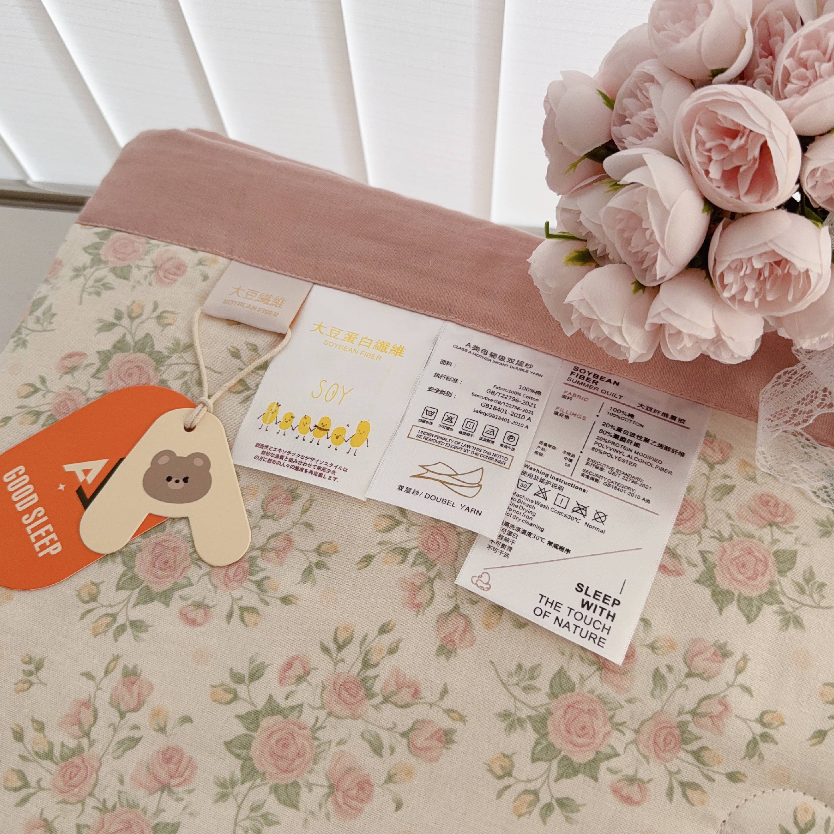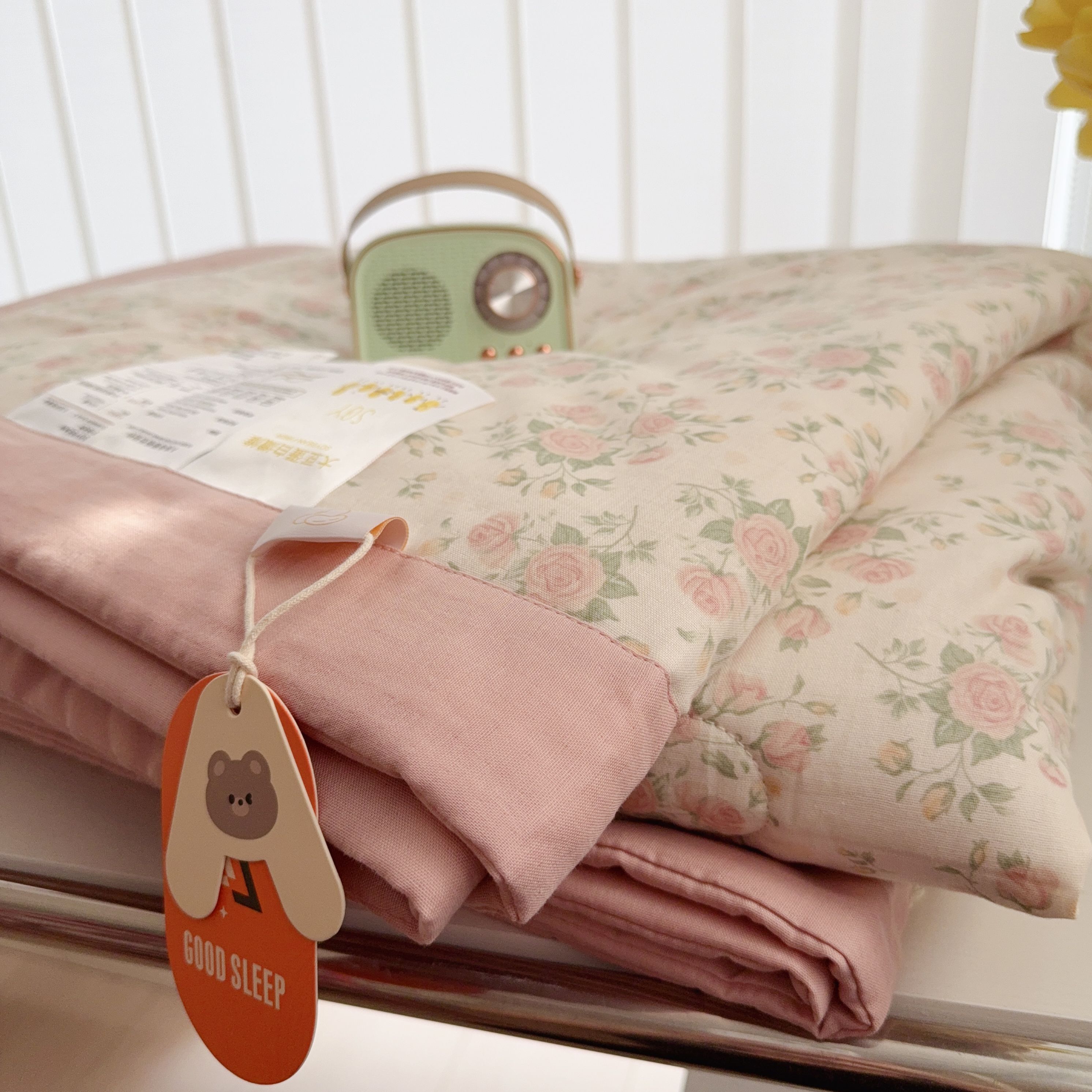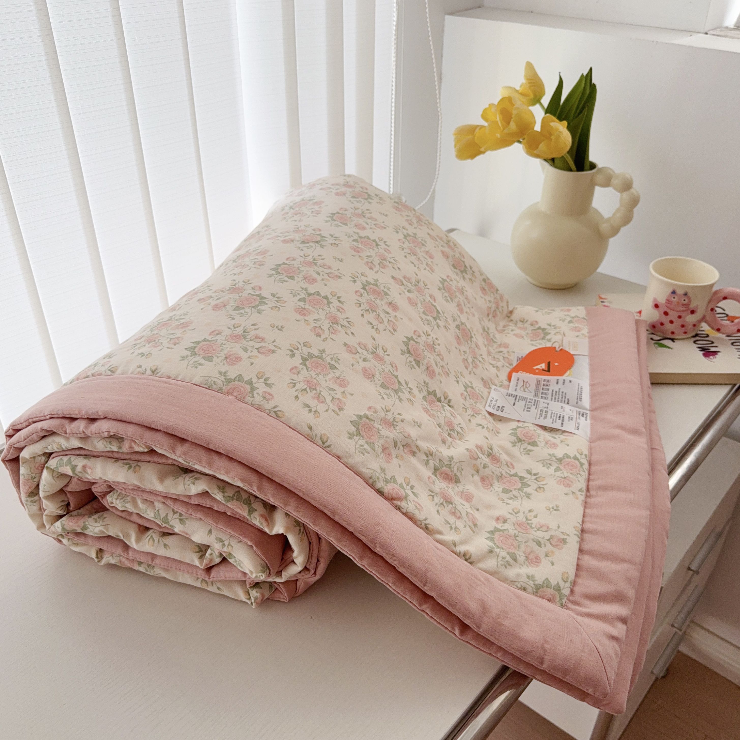 商品名称:于果 2025新款全棉双层纱夏被四件套 玫瑰米