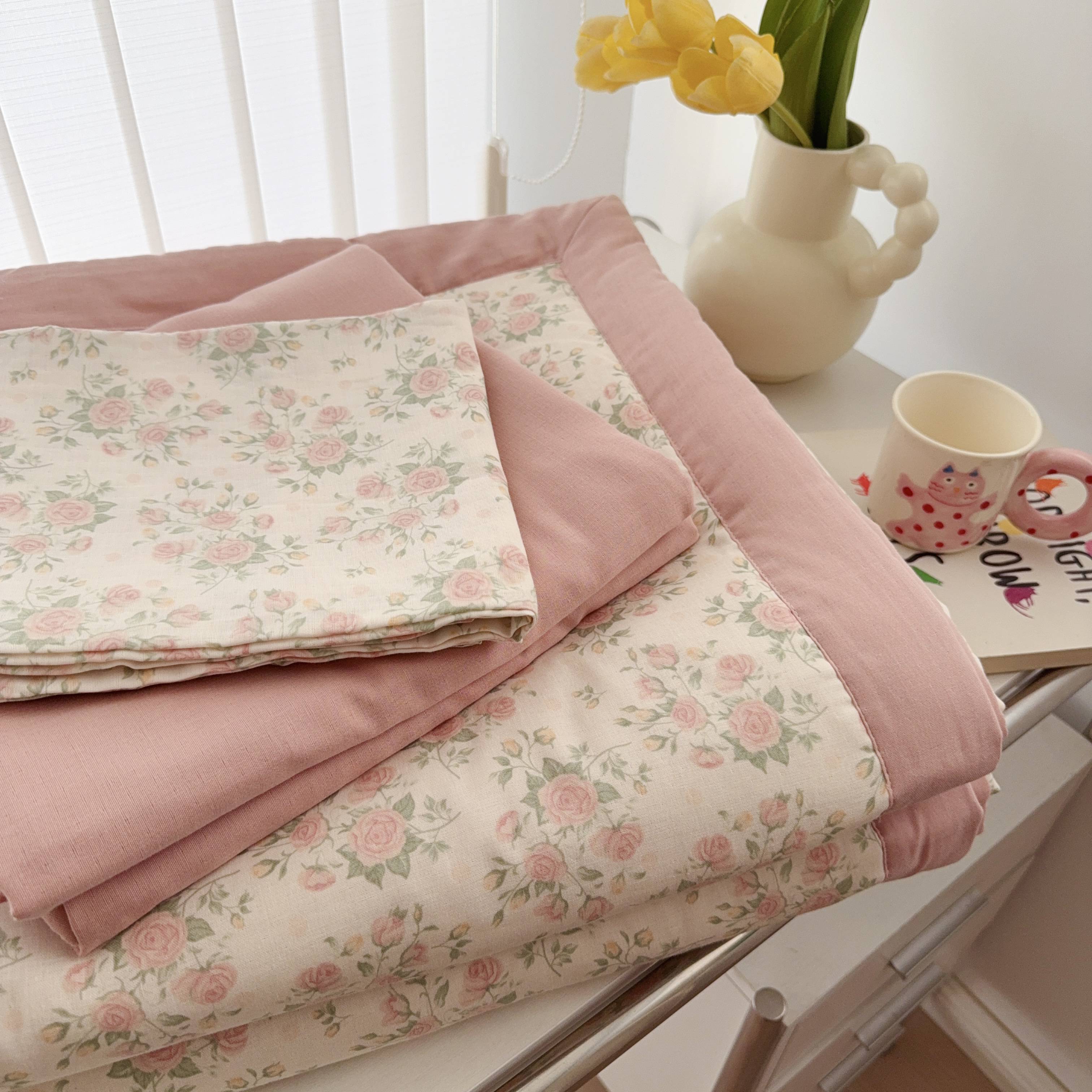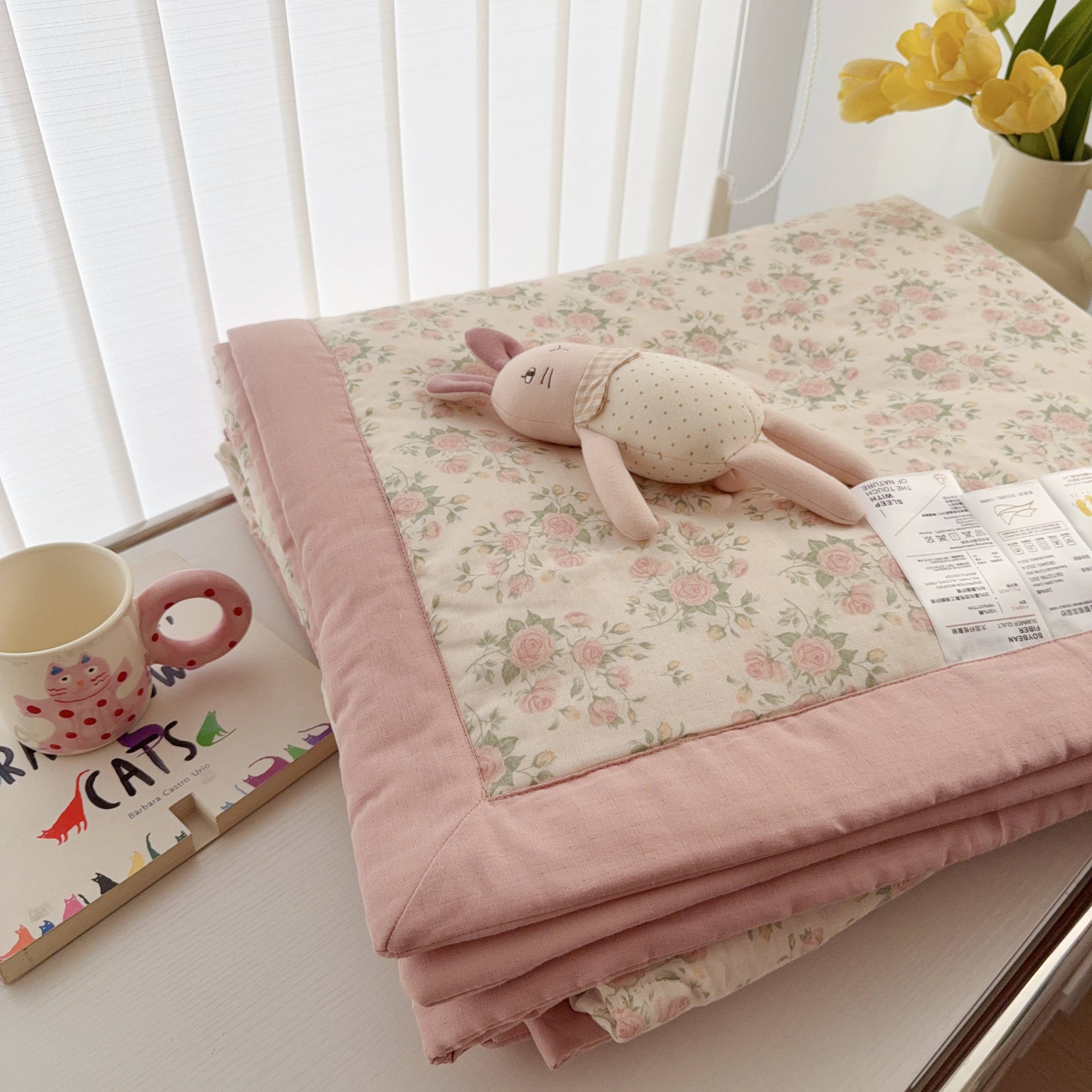 于果 2025新款全棉双层纱夏被四件套 玫瑰米