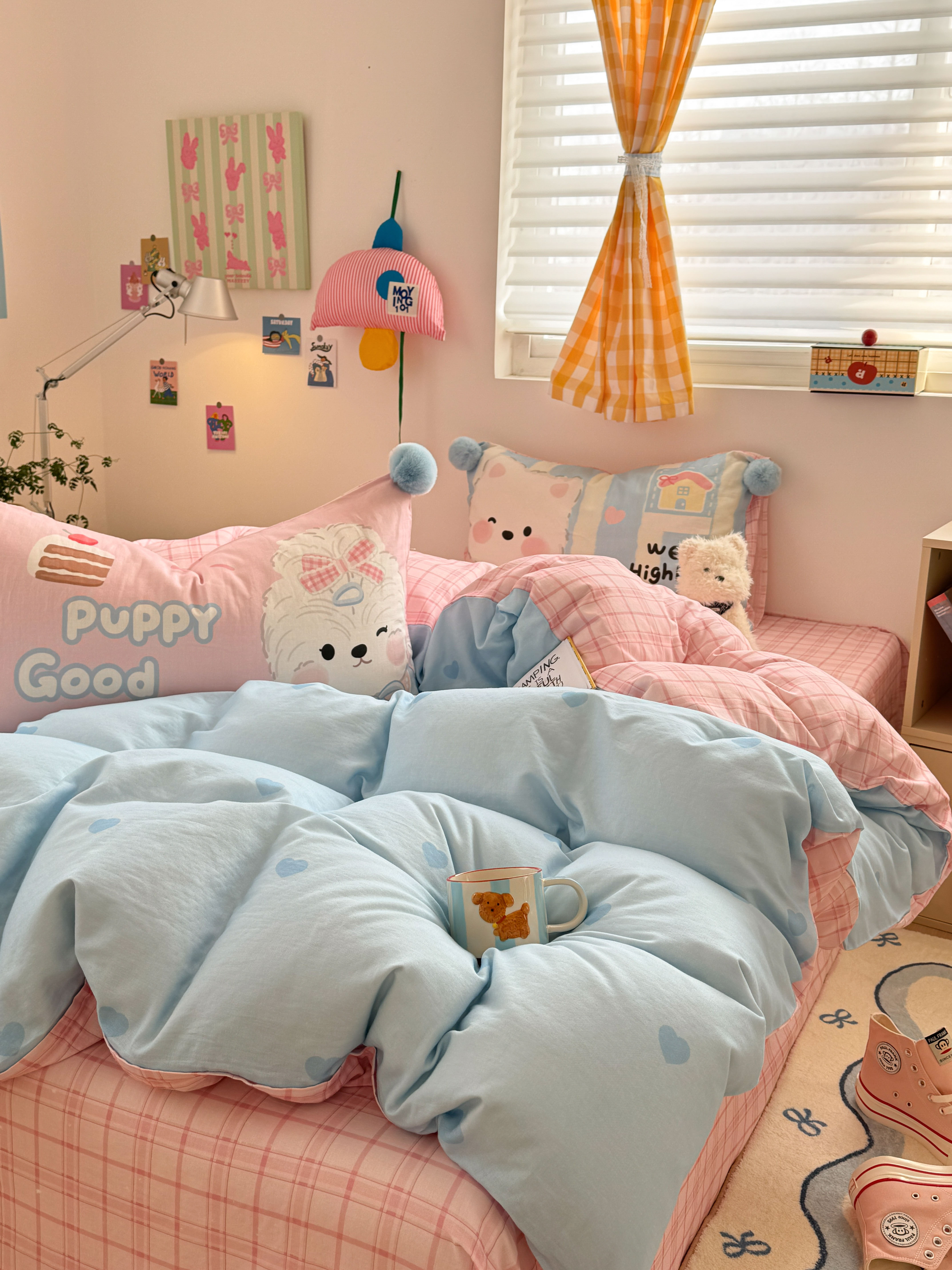 • 91家纺网 家纺一手货源 找家纺 左视觉  小清新风小窝感卡通套件拍摄赏析