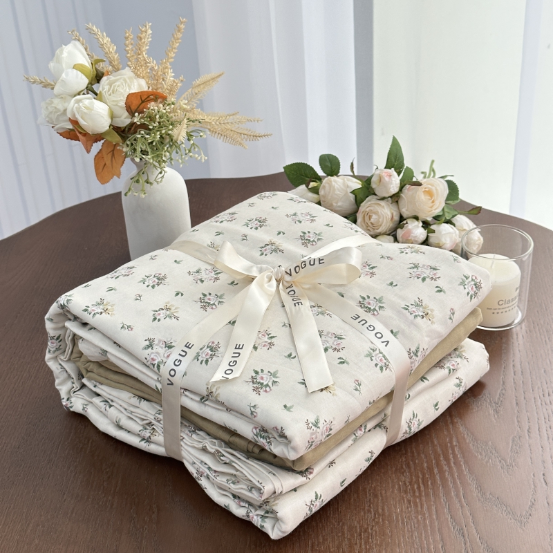 商品名称:黛馨家居2025新款全棉A类小清新双层纱四件套-系列二 复古艾莉