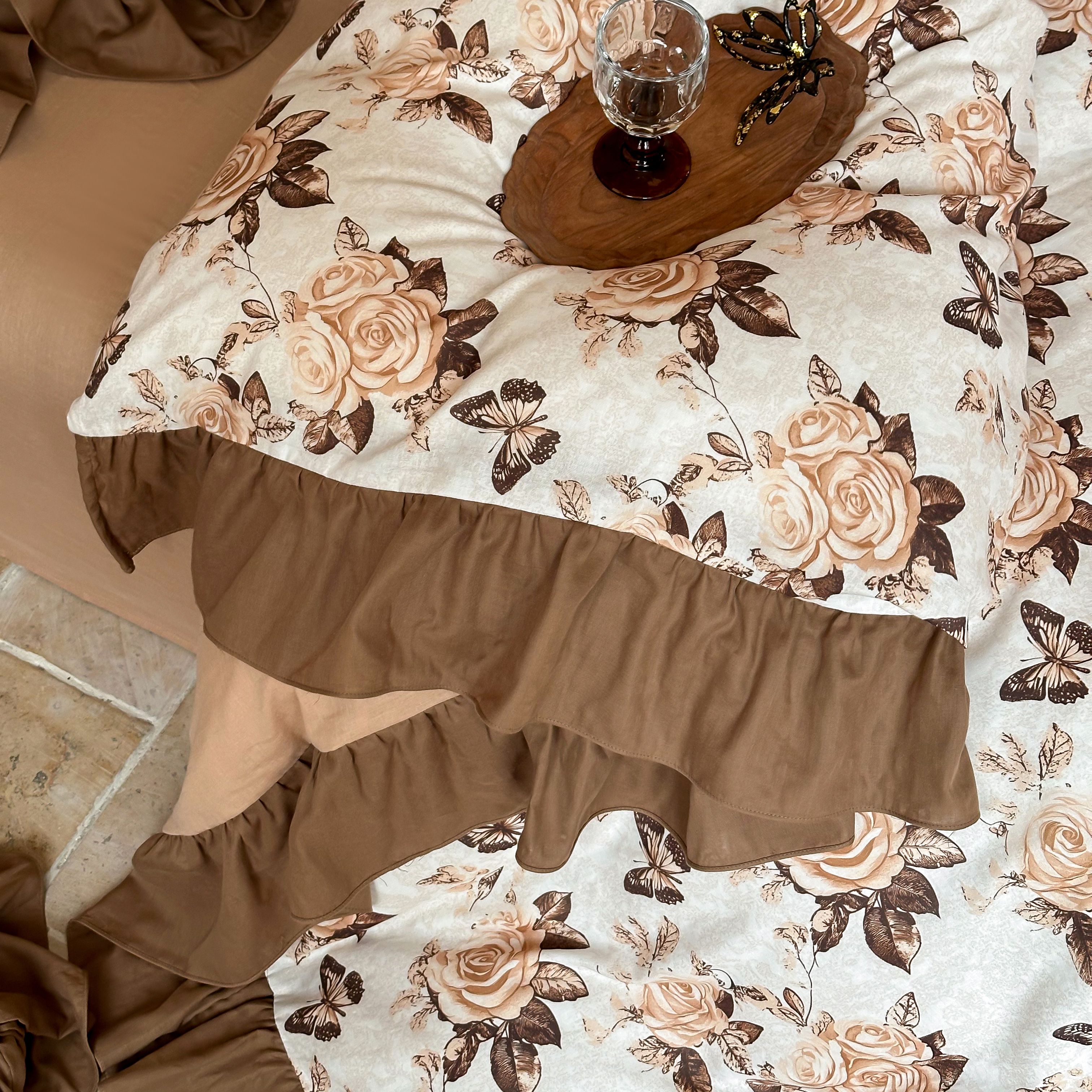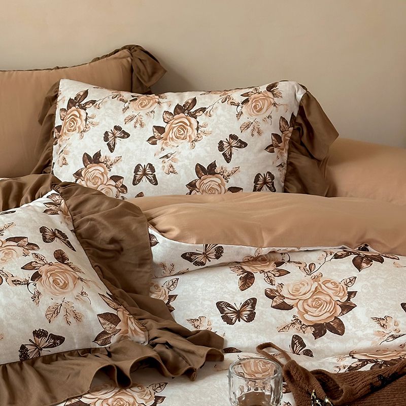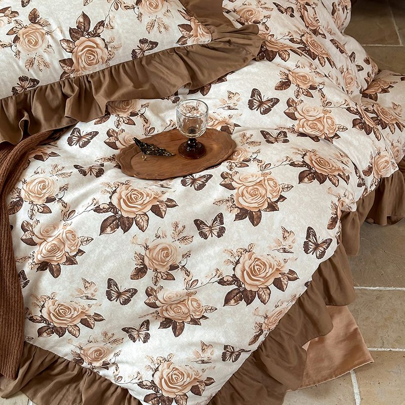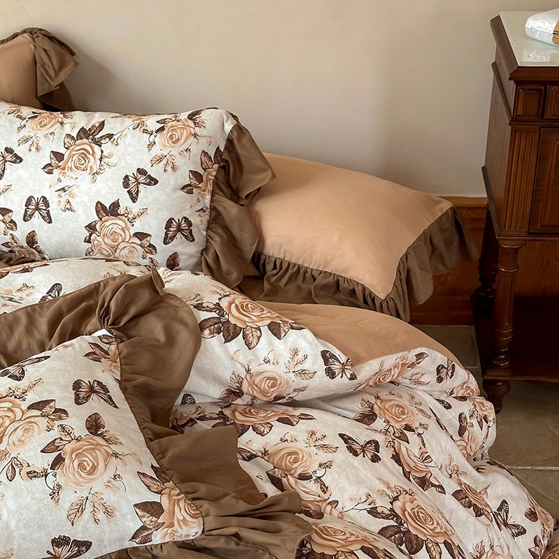 (总)多乐娜 2025新款法式100s贡缎 长绒棉纯棉工艺款四件套 全棉花边款,觅蝶