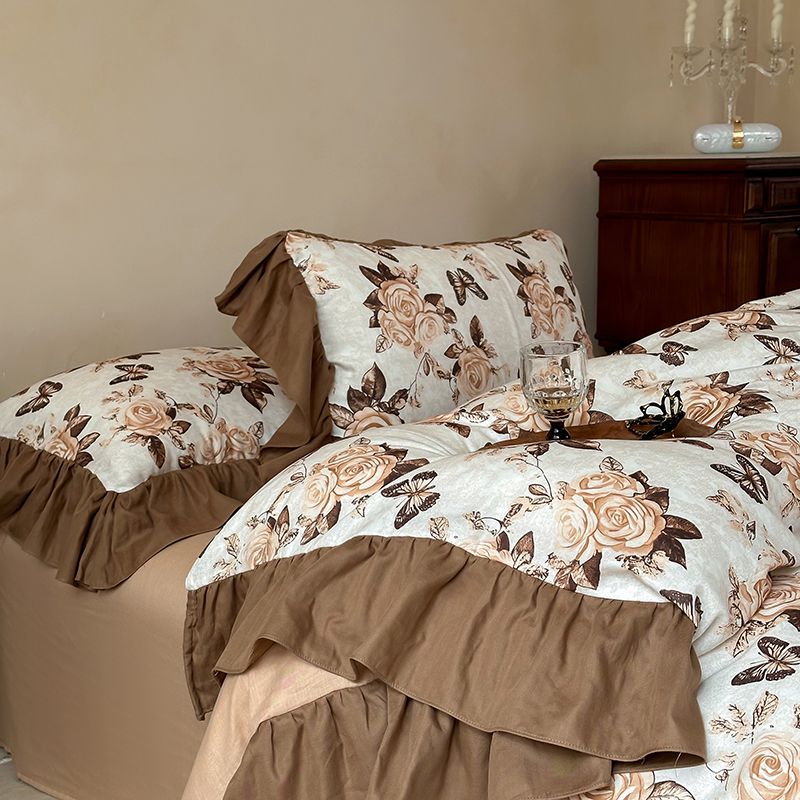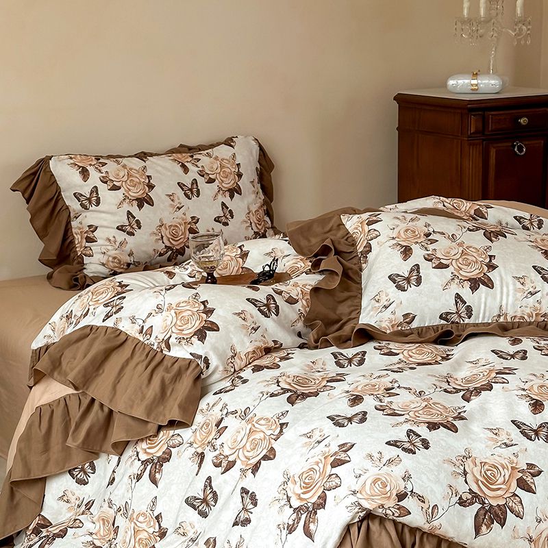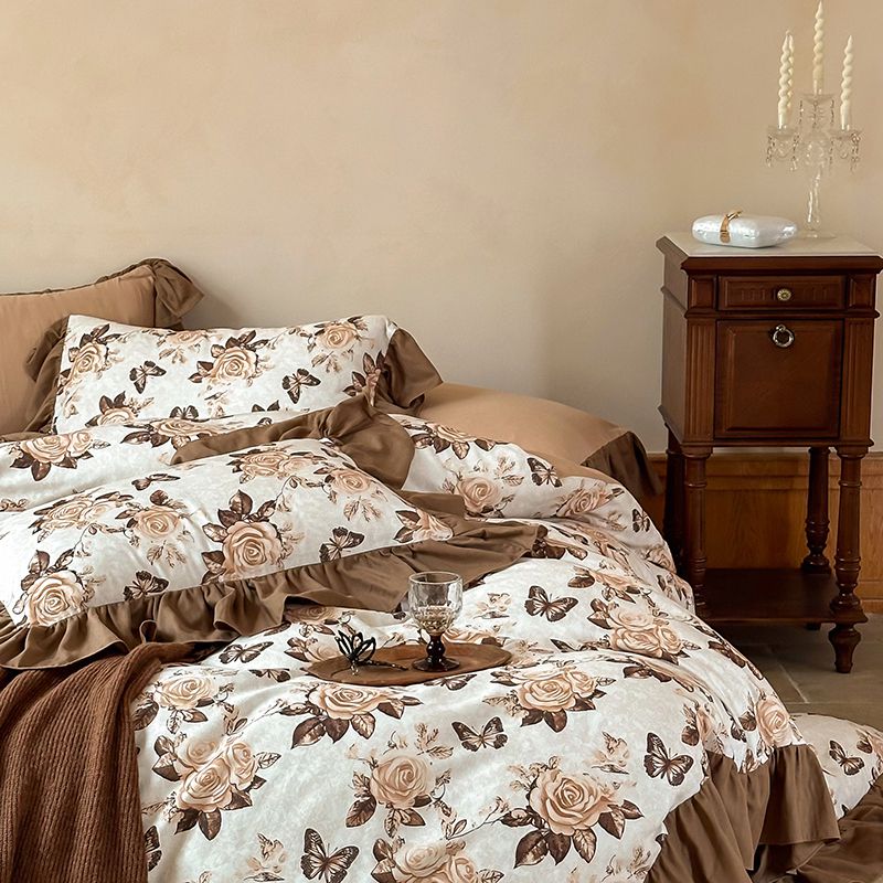 (总)多乐娜 2025新款轻法式100S贡缎长绒棉数码印花纯棉双层花边四件套 轻奢全棉(会员-20),浮光影(双层花边款)