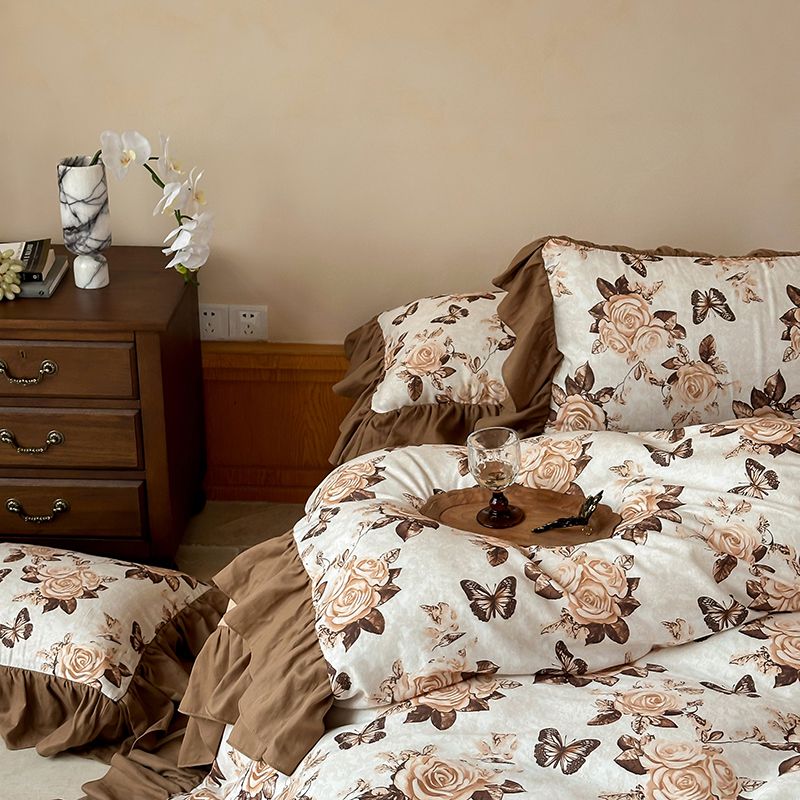 (总)多乐娜 2025新款法式纯棉双层纱四件套活性数码长绒棉全棉花边工艺款四件套-伊芙恩