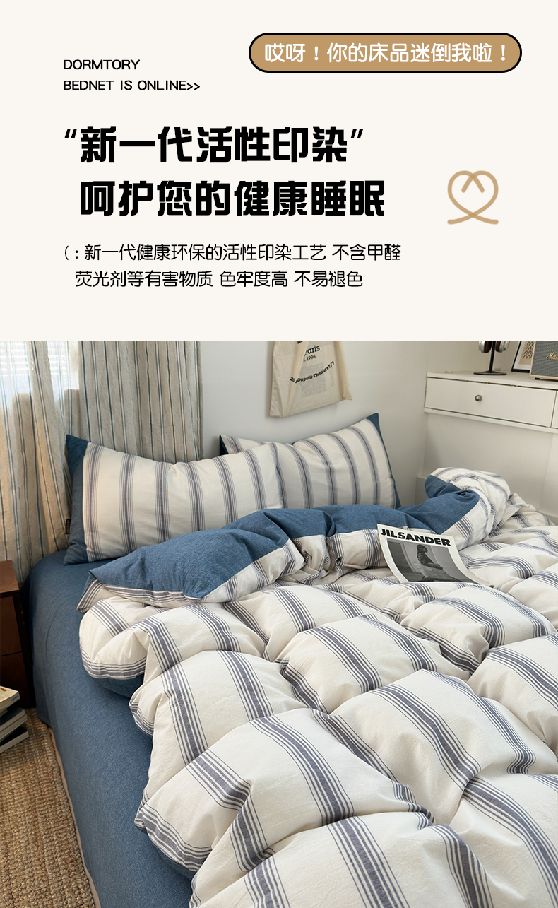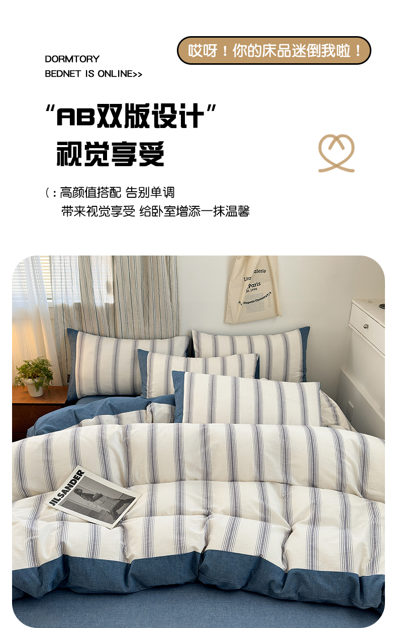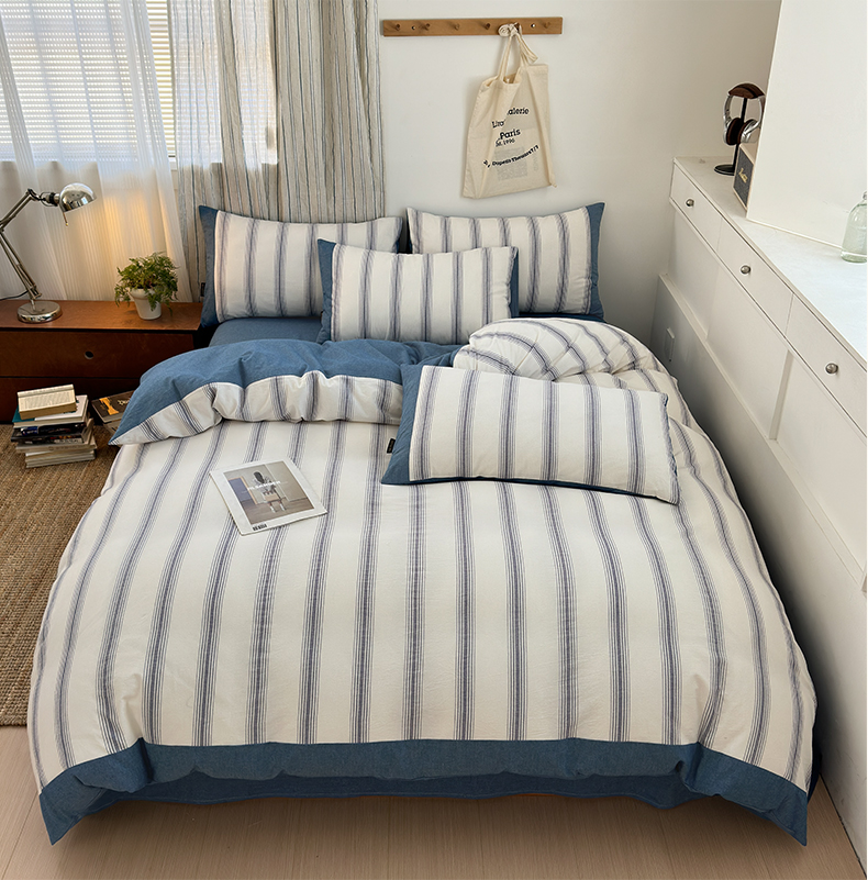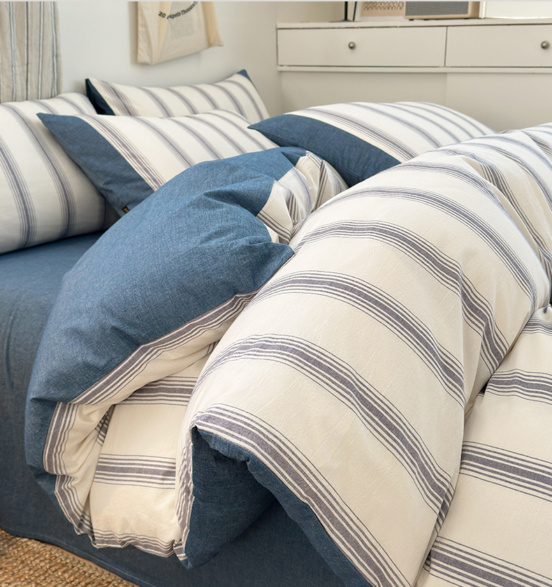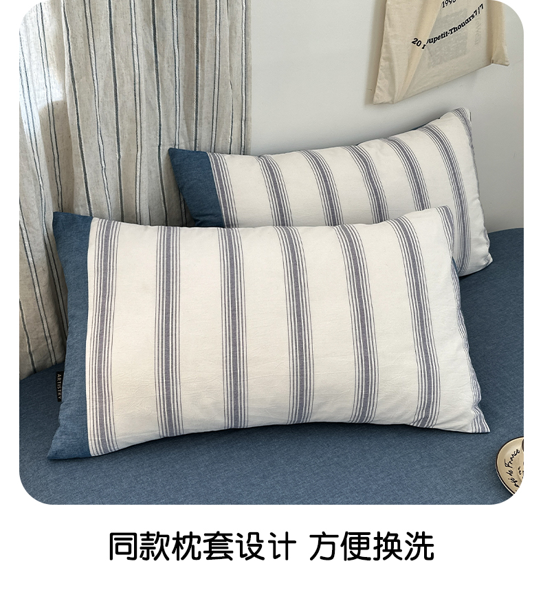 商品名称:娜娜 2025新款A类全棉色织水洗棉四件套 罗马系列-深蓝
