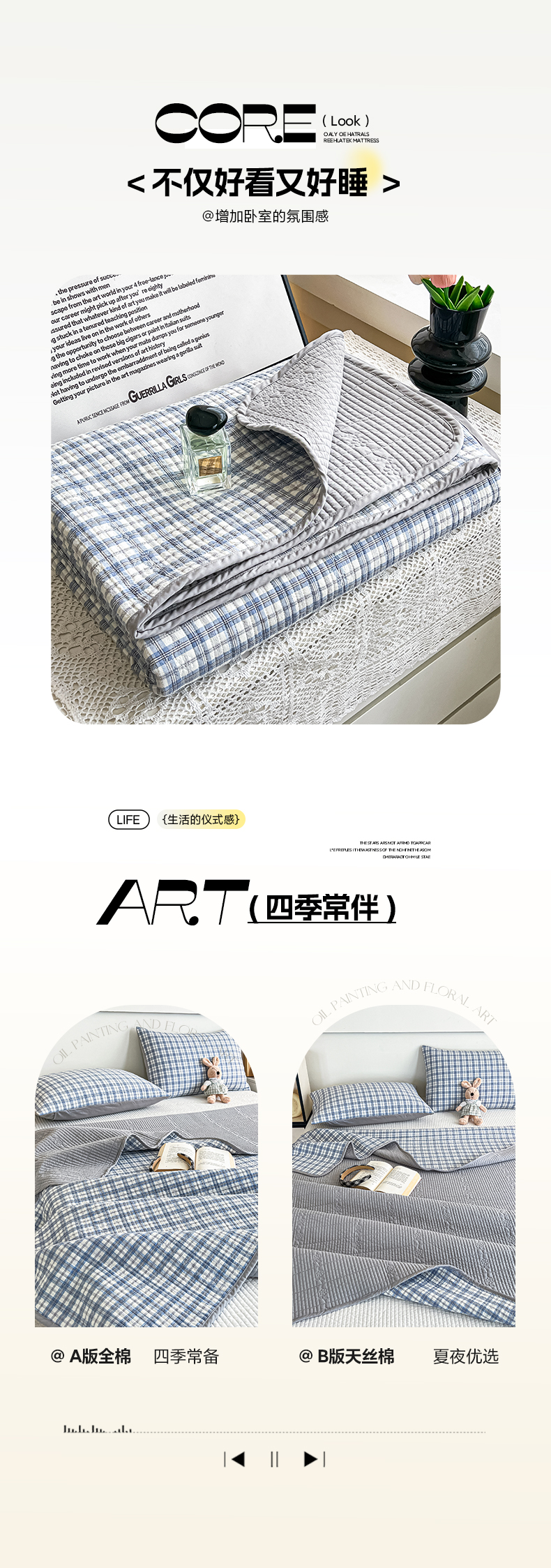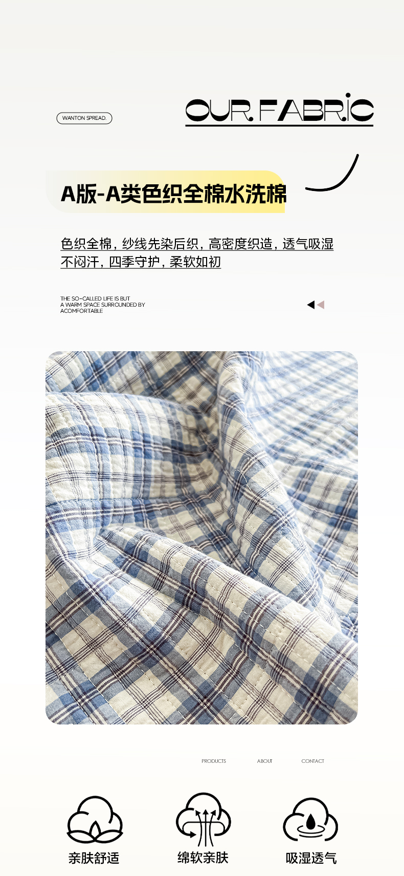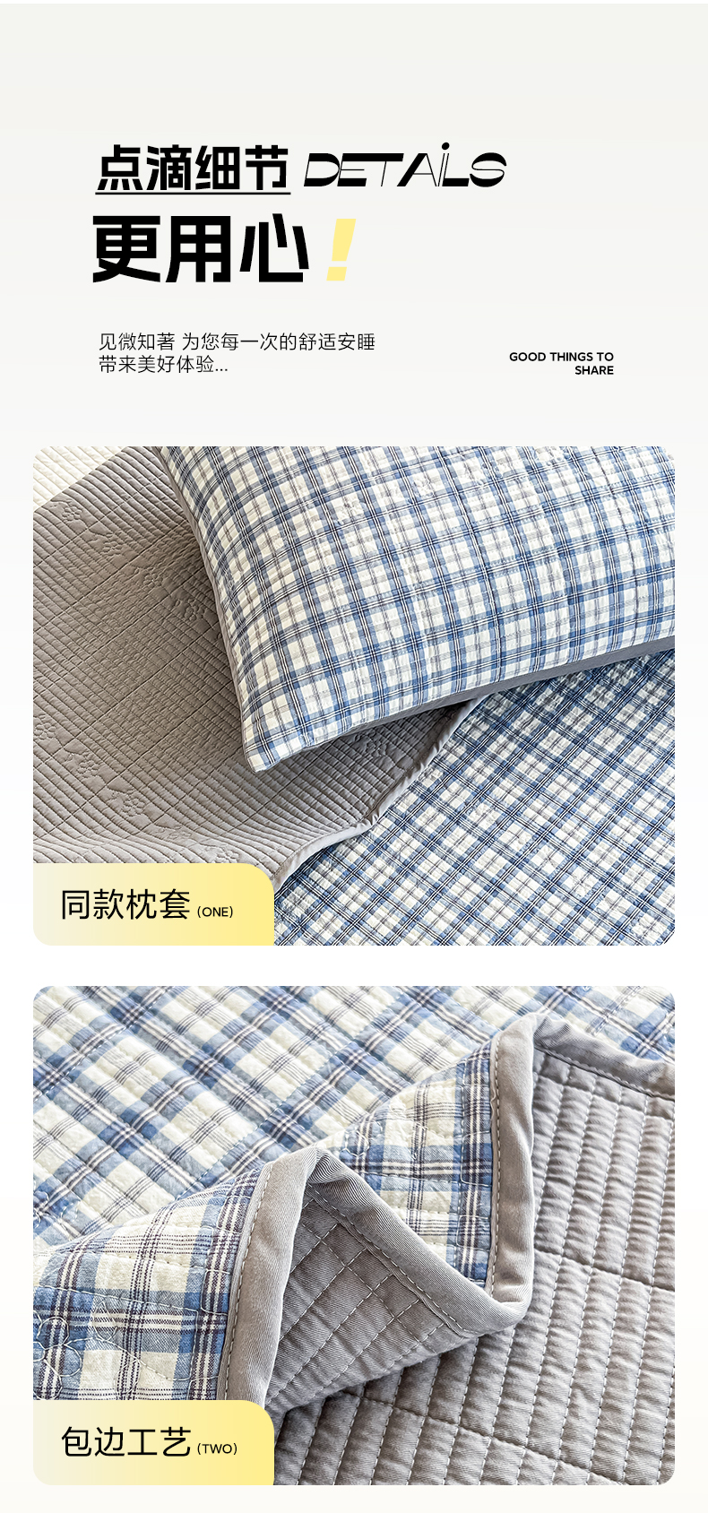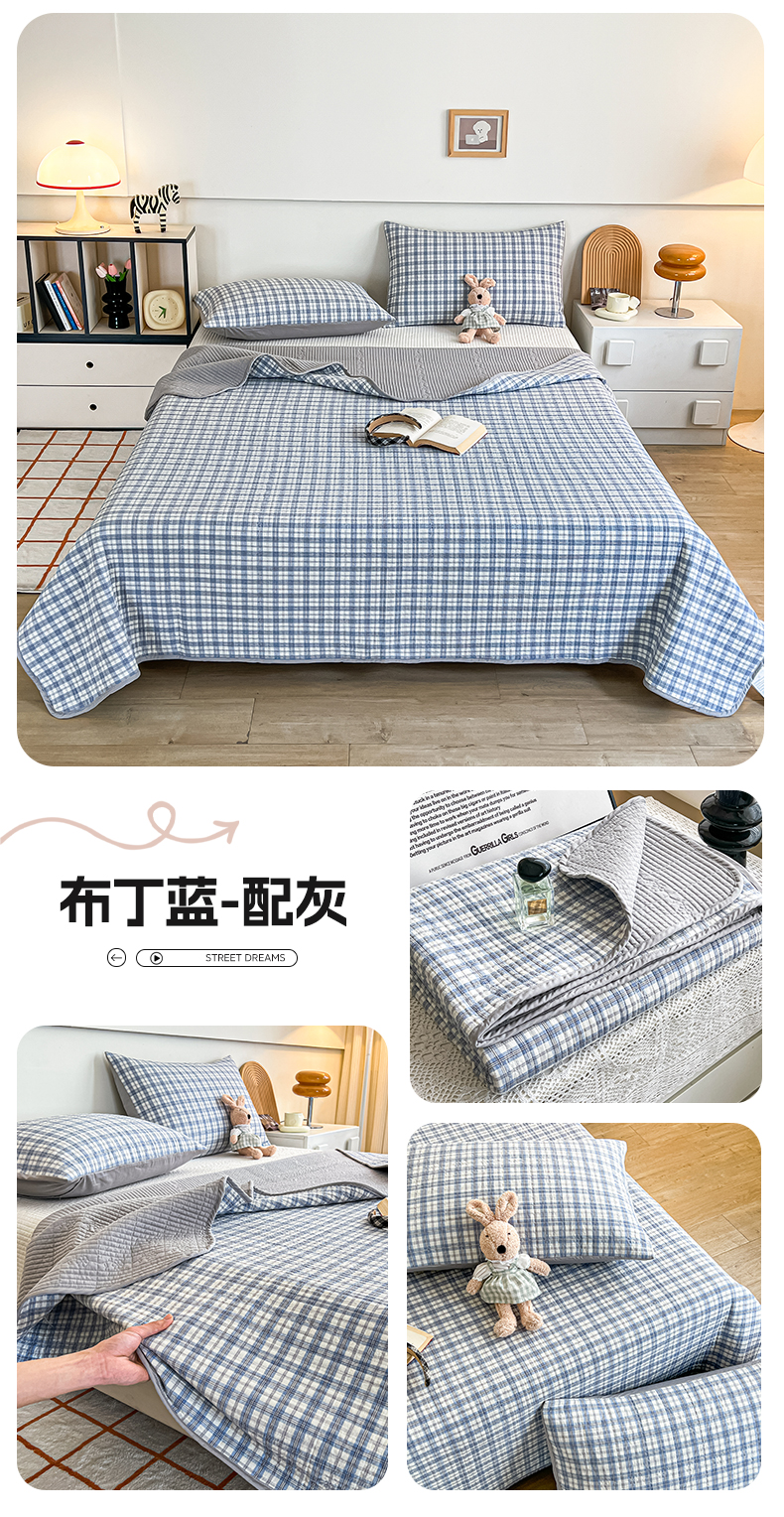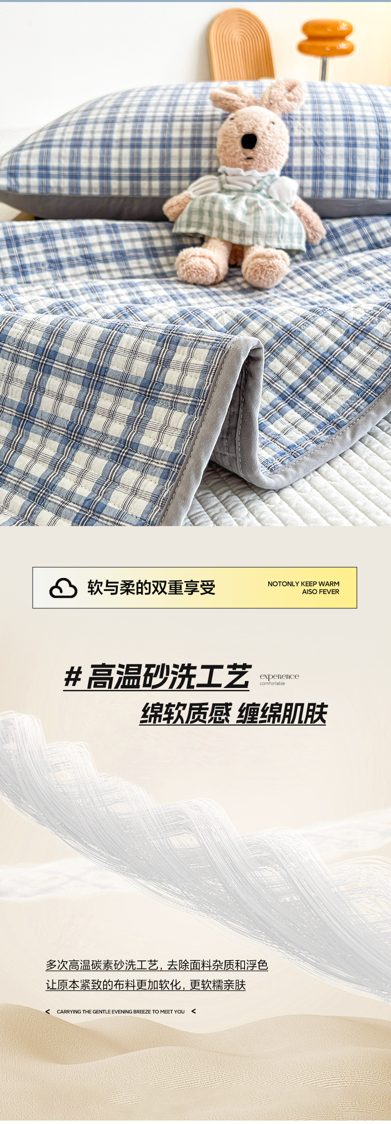 当前位置: 91家纺网 > 商品网购 > 床品套件 > 四件套 > 其它四件套 > 沐纯家居 2025新款格子款天丝棉床盖三件套 布丁蓝-配灰