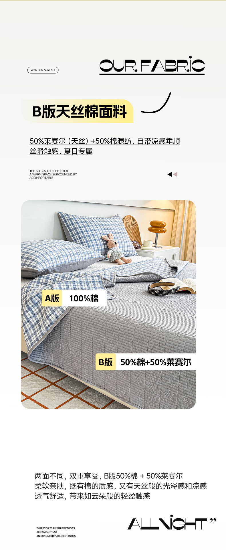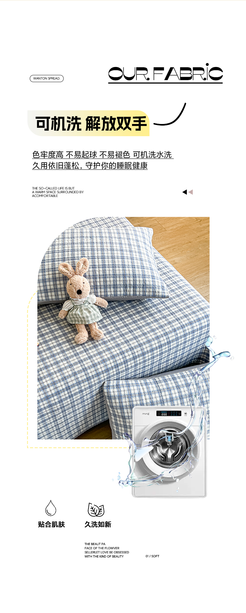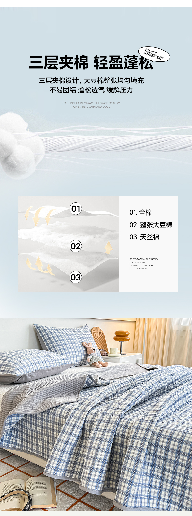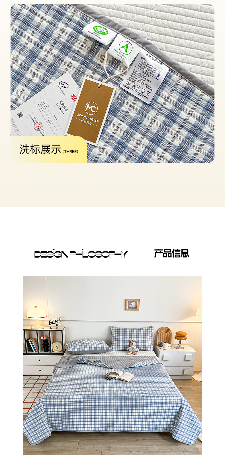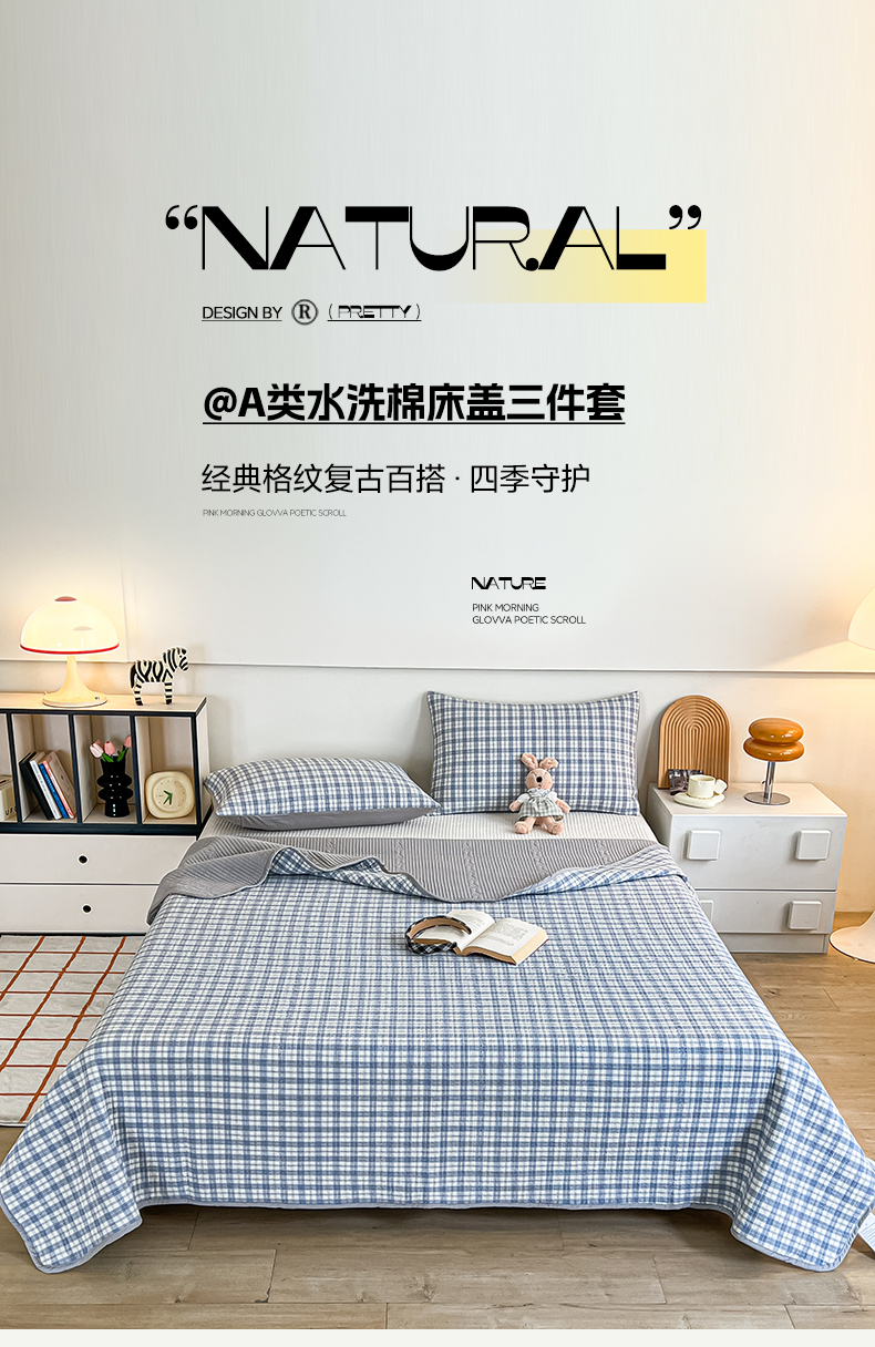 当前位置: 91家纺网 > 商品网购 > 床品套件 > 四件套 > 其它四件套 > 沐纯家居 2025新款格子款天丝棉床盖三件套 布丁蓝-配灰