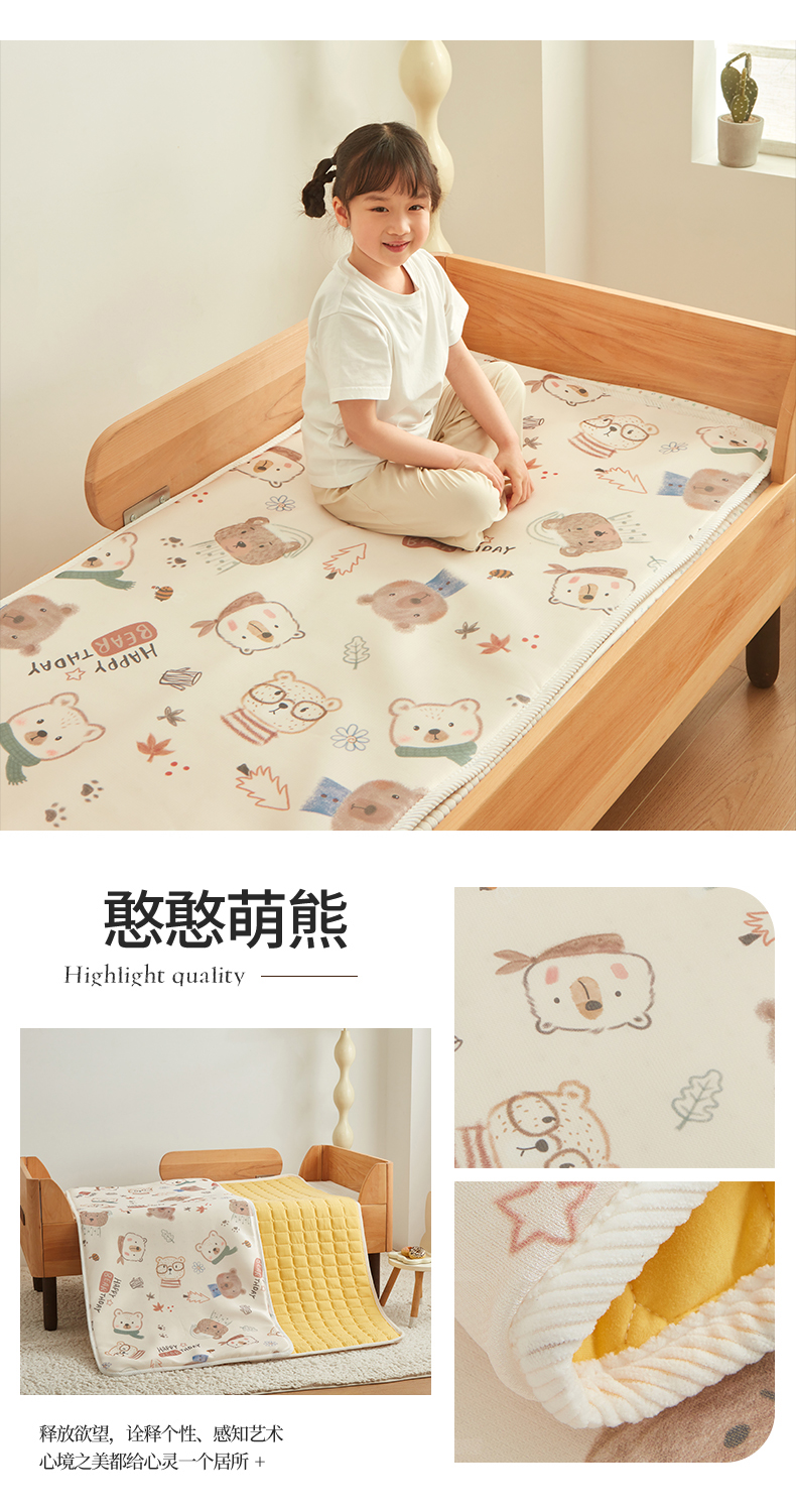 • 91家纺网 家纺一手货源 找家纺 艾佳宝贝 2025春夏A类多动能儿童双面床垫冰丝凉席 憨憨萌熊