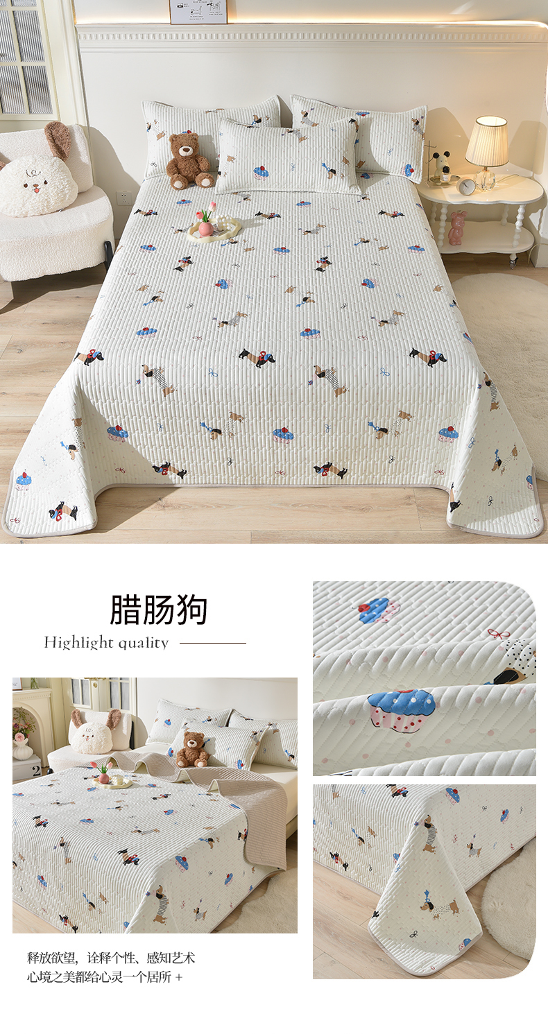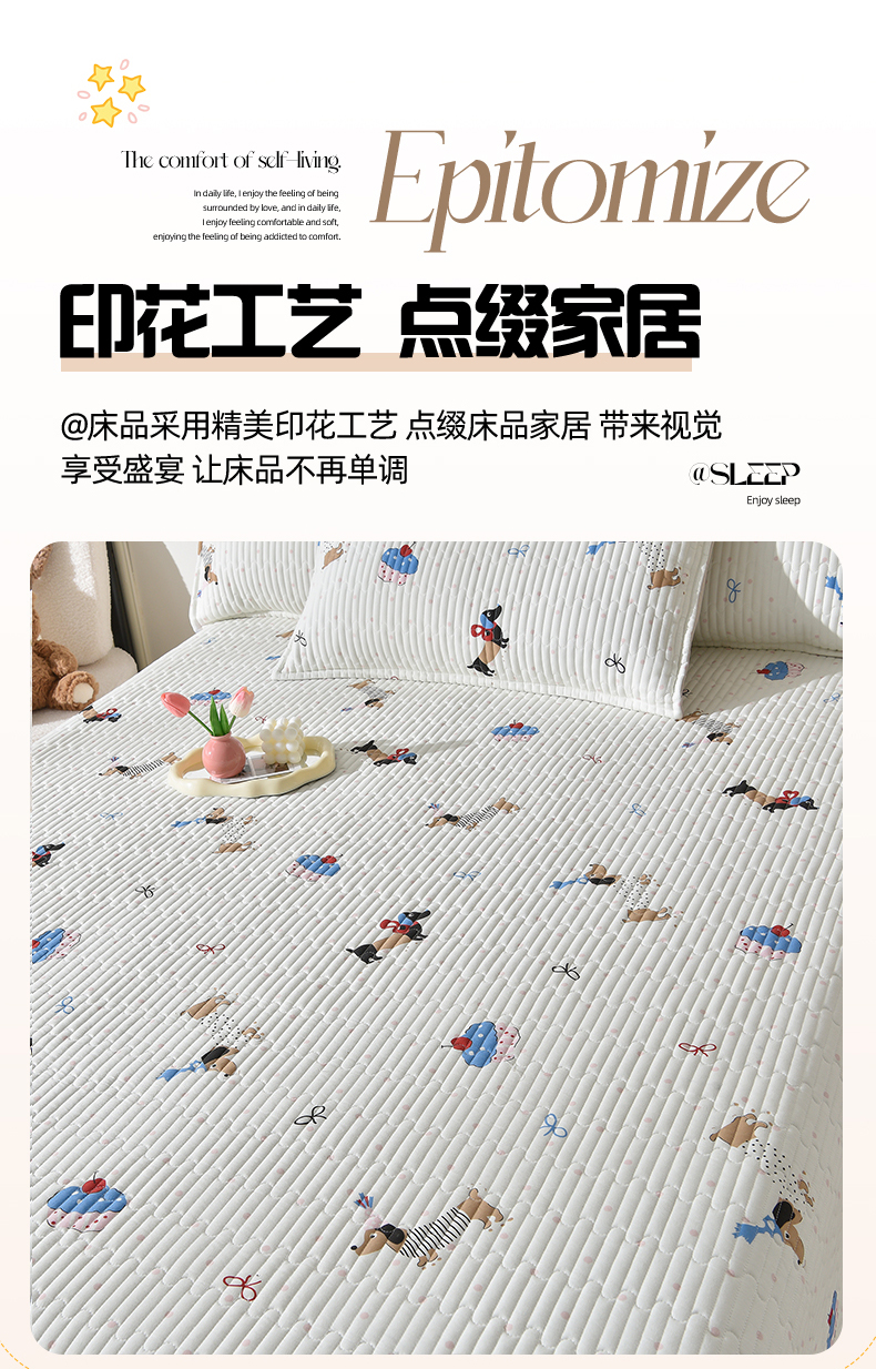 床笠人家 2025新款全棉夹棉防水床垫 嗨皮狗,嗨皮狗