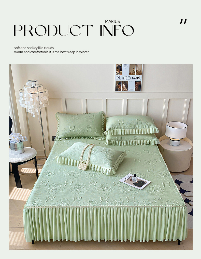 2025新款复合三明治床裙款凉豆豆凉席三件套系列 约定-清香绿