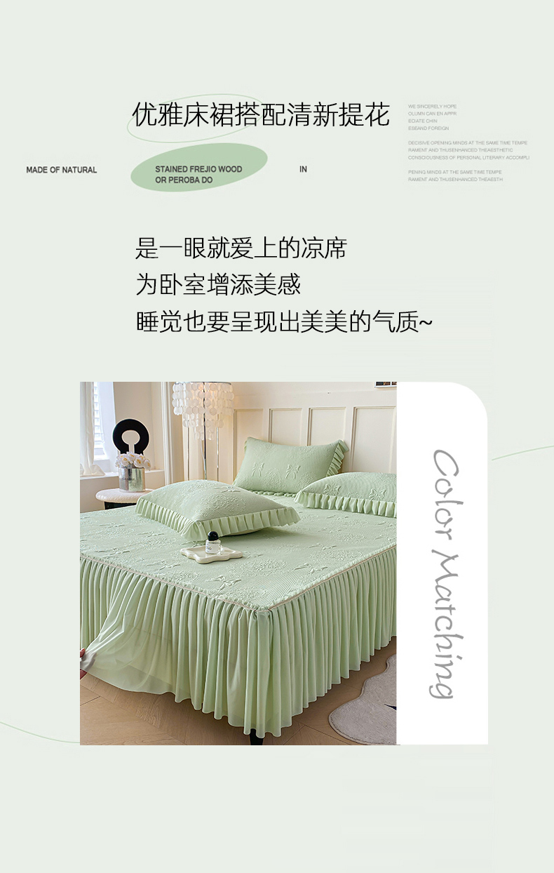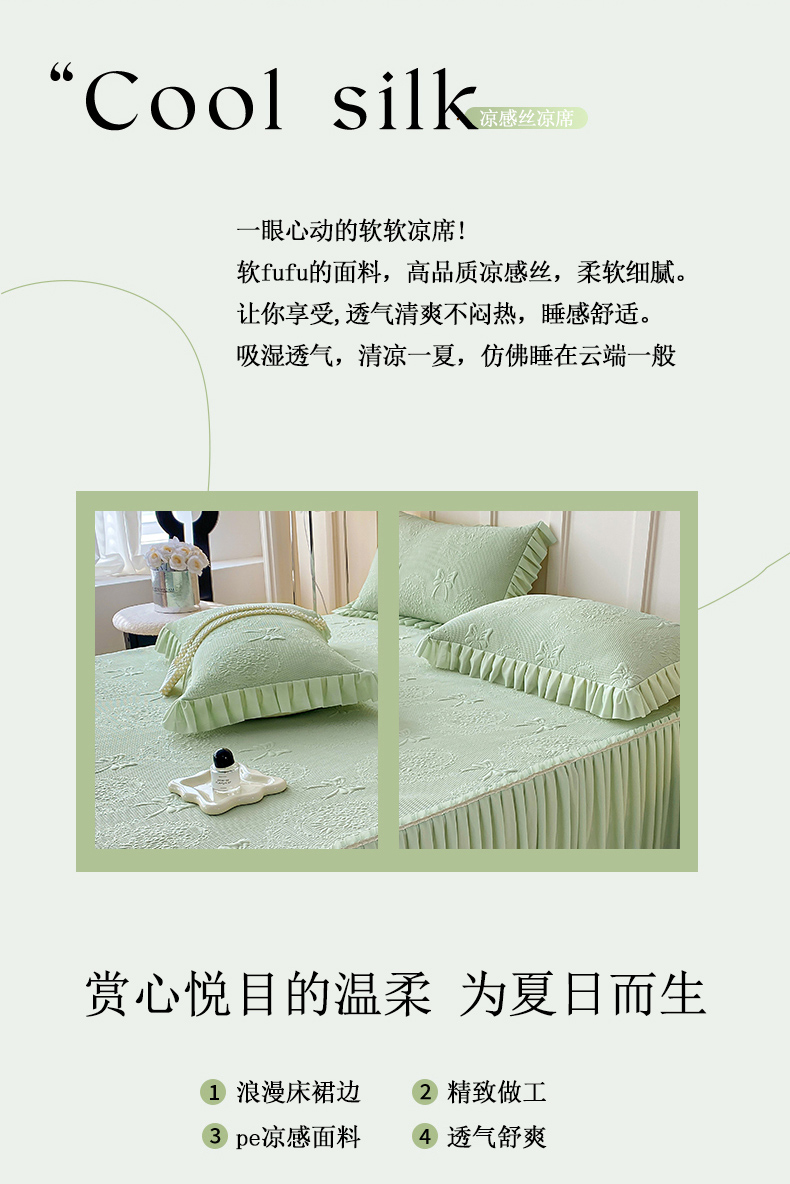 商品名称:2025新款复合三明治床裙款凉豆豆凉席三件套系列 约定-清香绿