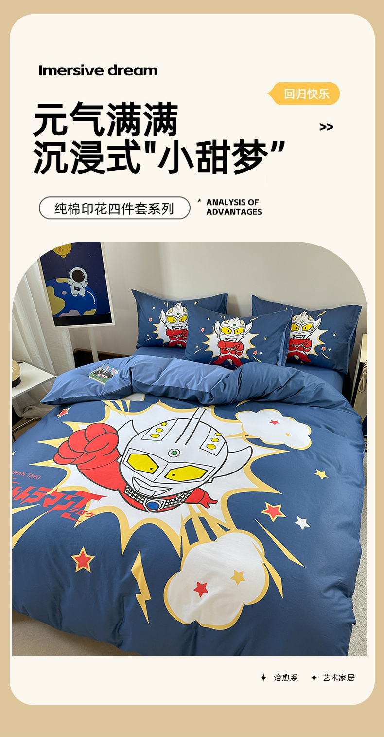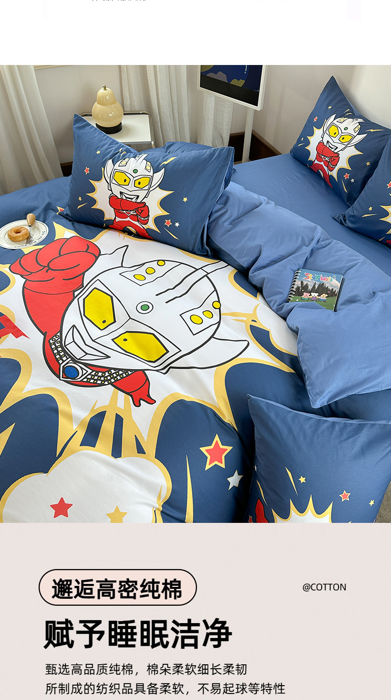 当前位置: 91家纺网 > 商品网购 > 床品套件 > 四件套 > 全棉普通四件套 > 金爱家 2025新款纯棉数码印花系列四件套-奥特曼 D-突破重围