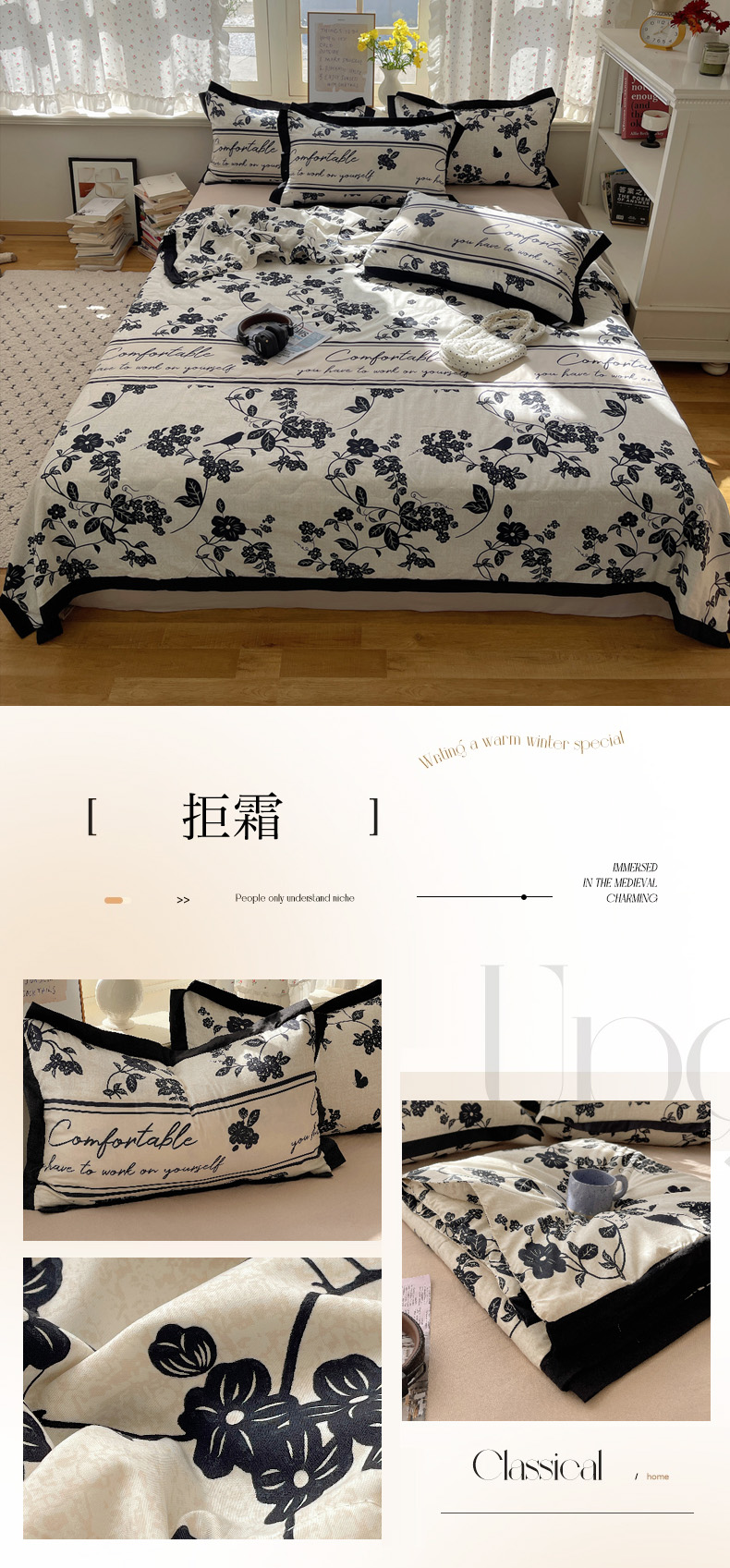 当前位置: 91家纺网 > 商品网购 > 床品套件 > 四件套 > 夏被四件套 > 花伞家居 2025新款赫本高级感黑白系列花边夏被四件套 夏被-拒霜