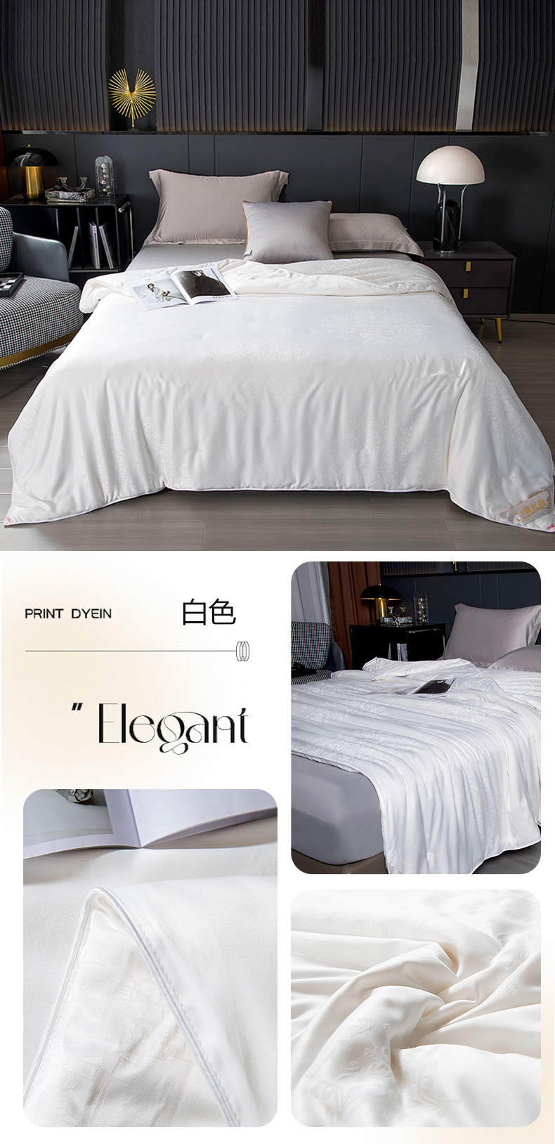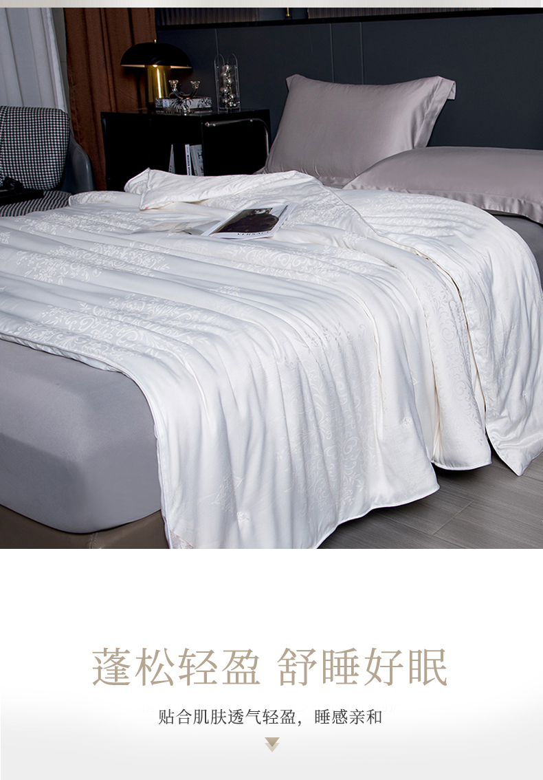 商品名称:鑫田家纺 2025新款100%桑蚕丝填充蚕丝被夏凉被高档提花面料 白色