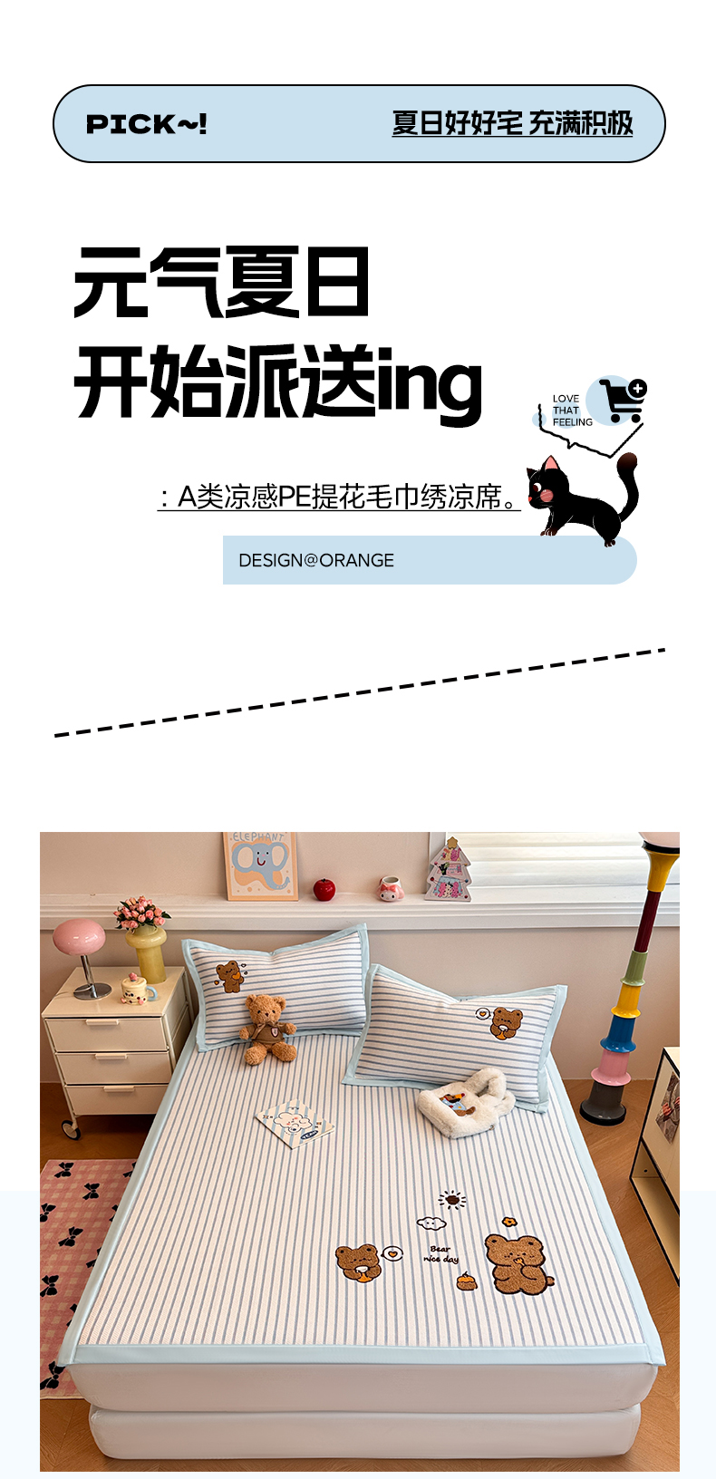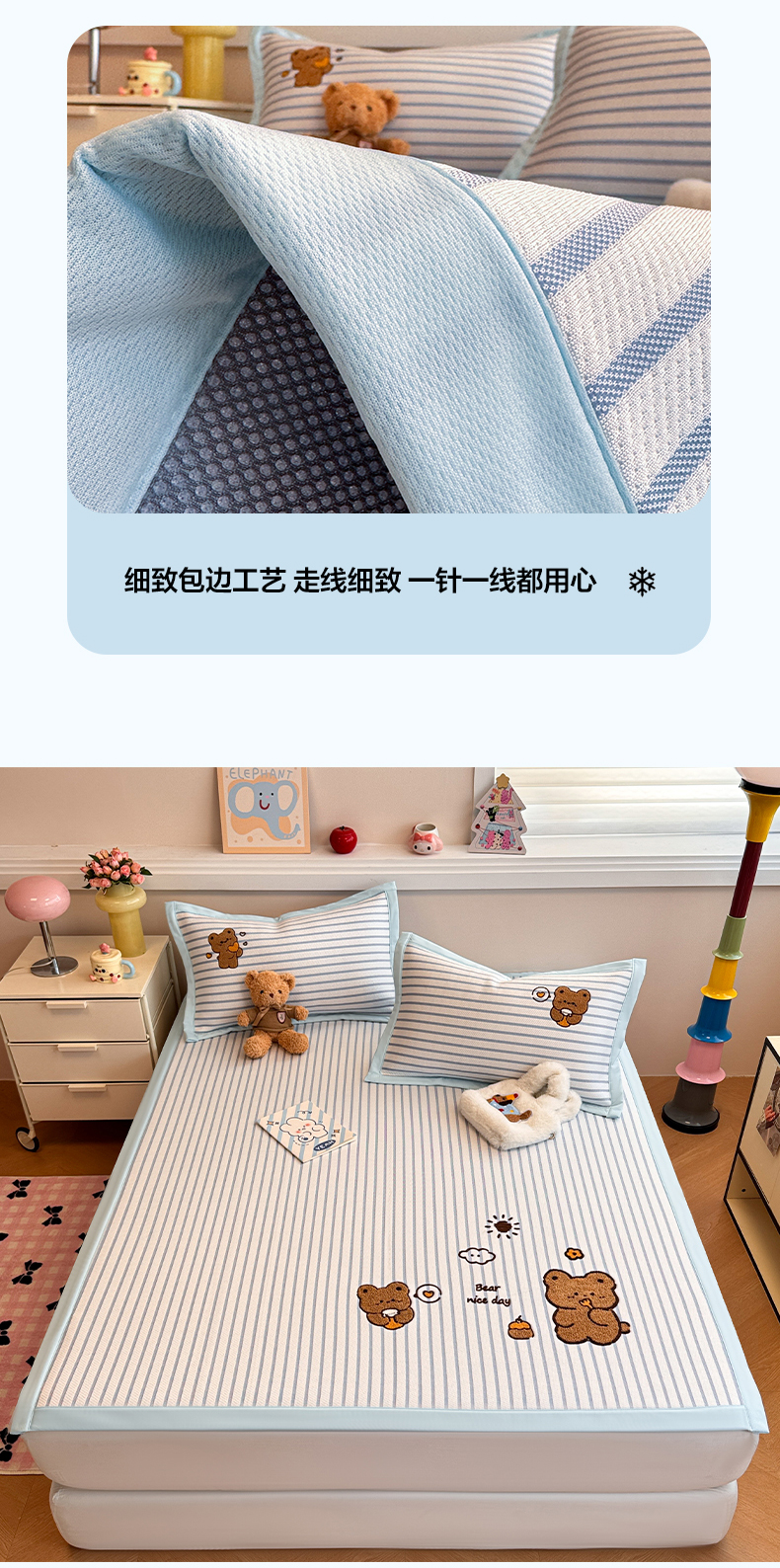 蓝邻家纺 2025年新款PE提花卡通毛巾绣凉席系列场景二 幸运狗