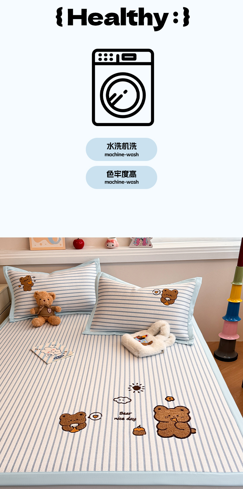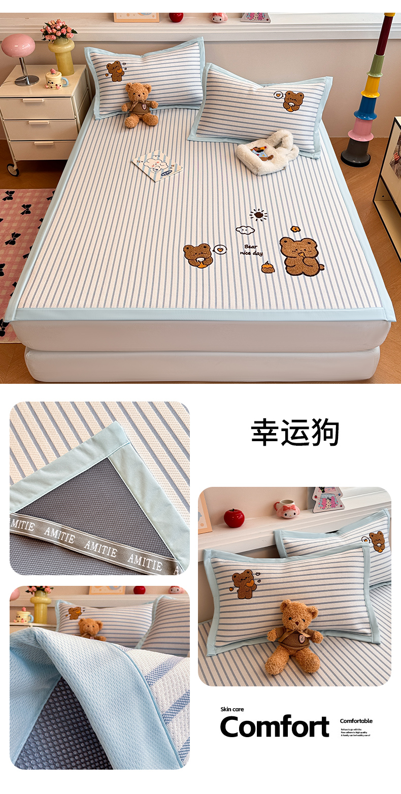 商品名称:蓝邻家纺 2025年新款PE提花卡通毛巾绣凉席系列场景二 幸运狗