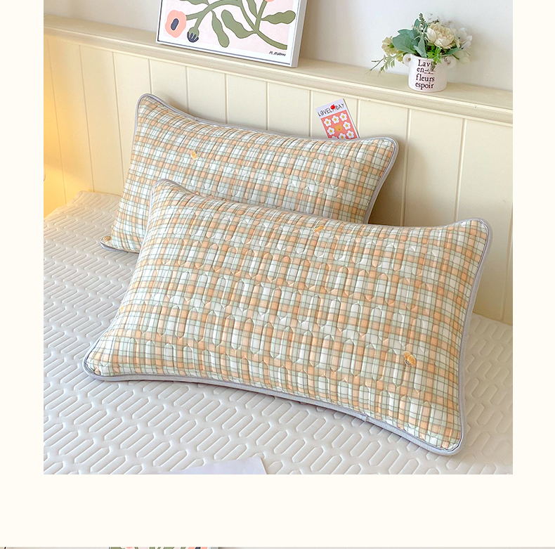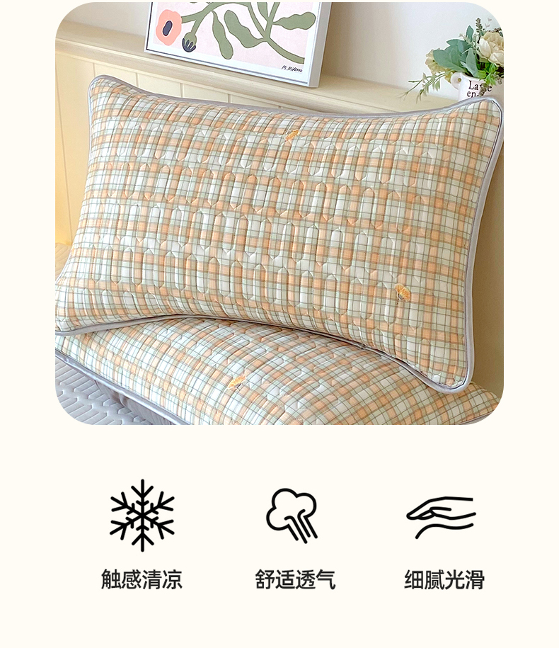 商品名称:雨彤家纺 2025年新款A类凉感丝乳胶单人枕套 轻盈格-橙