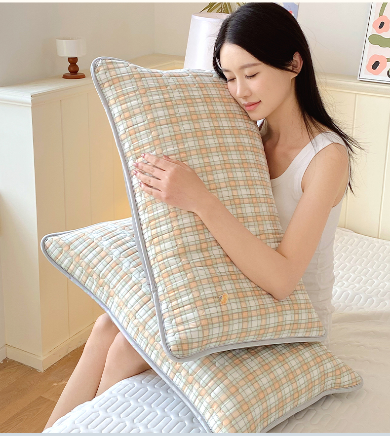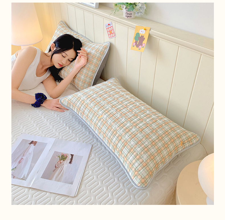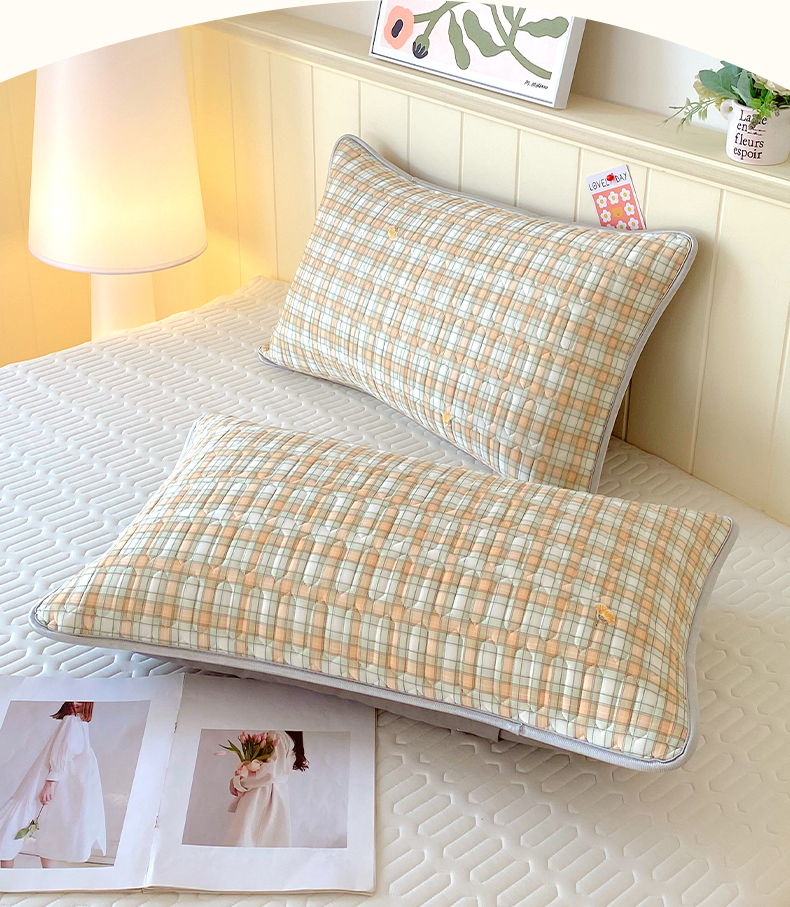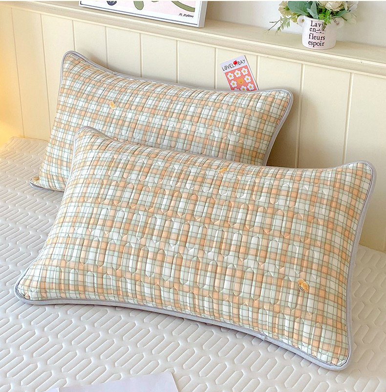 雨彤家纺 2025年新款A类凉感丝乳胶单人枕套 轻盈格-橙