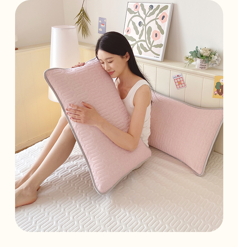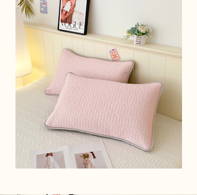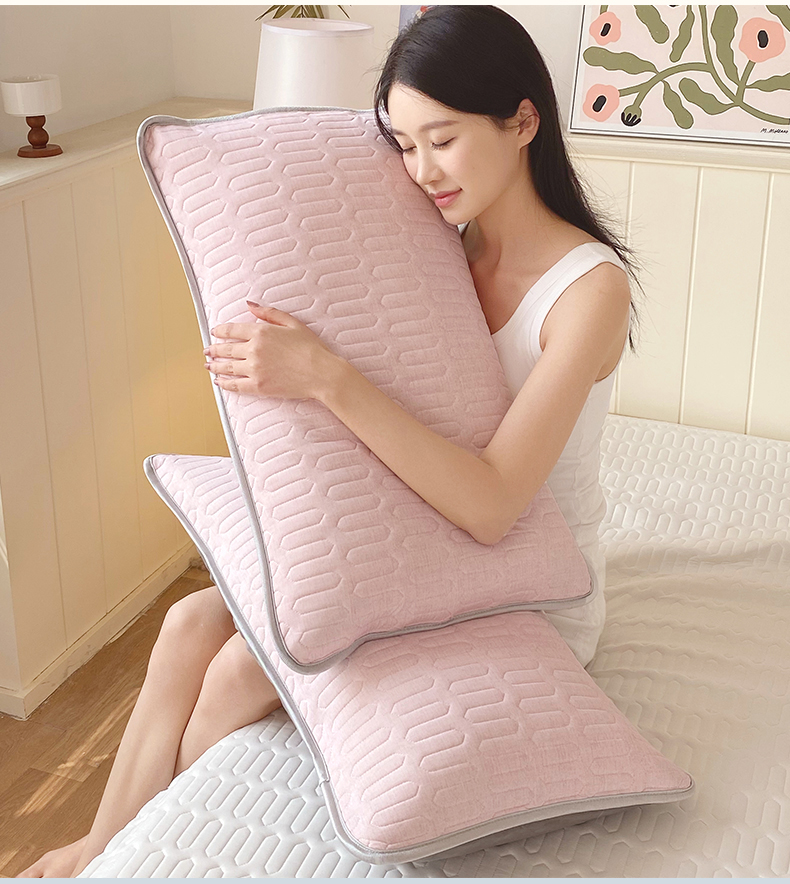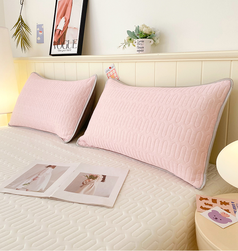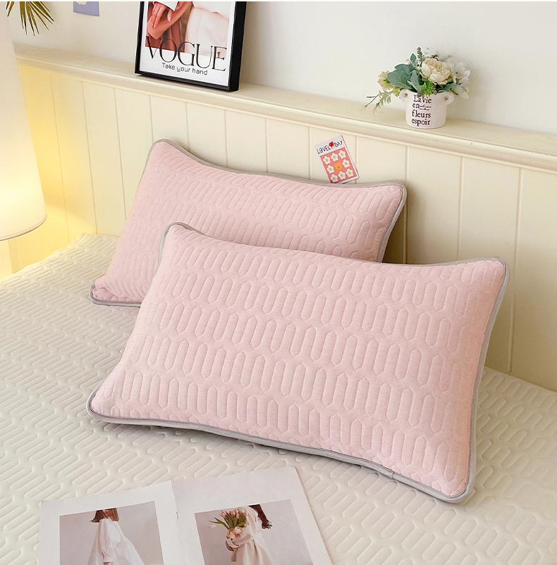 雨彤家纺 2025年新款A类凉感丝乳胶单人枕套 肌理纹-粉
