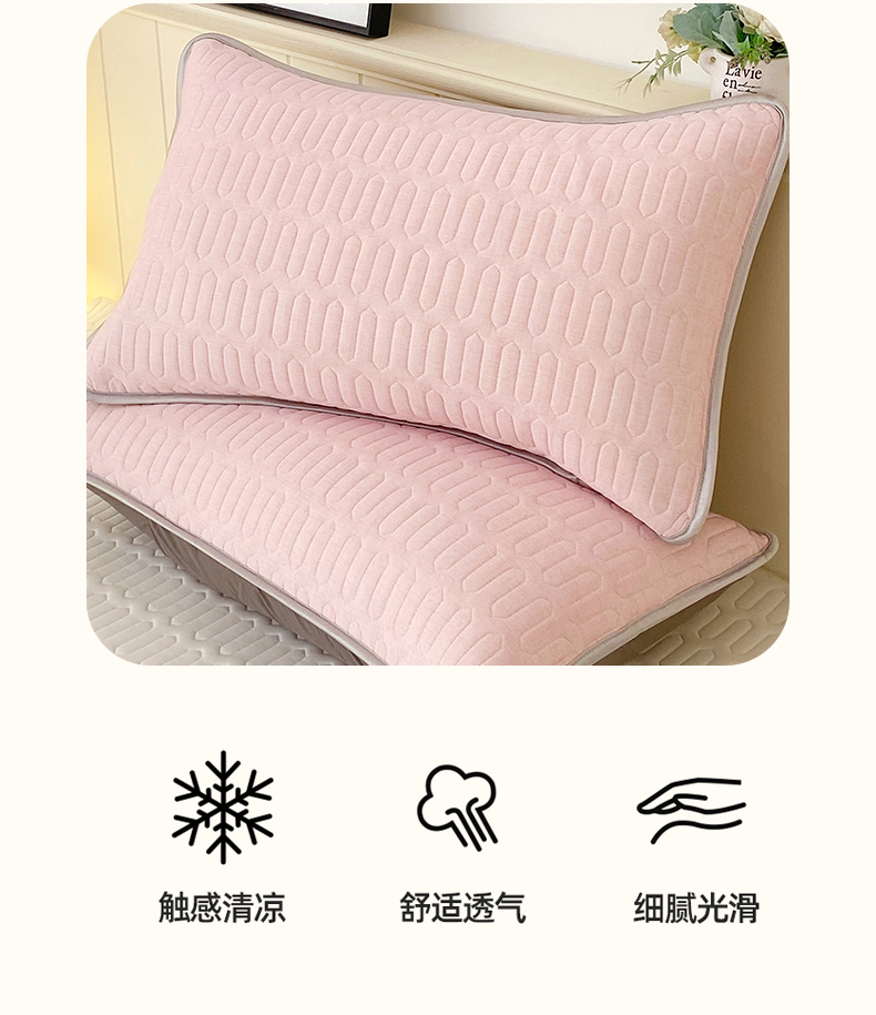 商品名称:雨彤家纺 2025年新款A类凉感丝乳胶单人枕套 肌理纹-粉