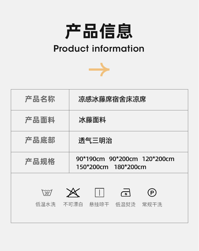 商品名称:久云居 2025新款冰藤席宿舍凉席席子 粘豆包