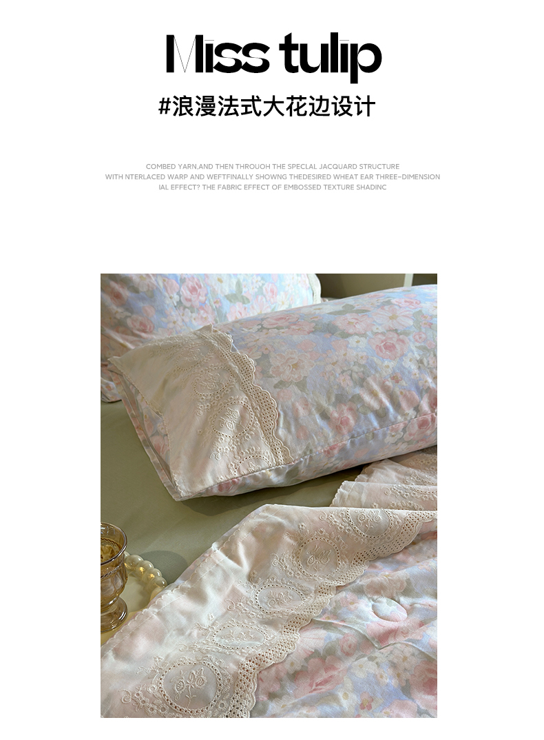 当前位置: 91家纺网 > 商品网购 > 床品套件 > 四件套 > 夏被四件套 > 绫韵家纺 2025夏季新品A类全棉纯棉双层纱法式大花边夏被空调被四件套 国色芳华-紫