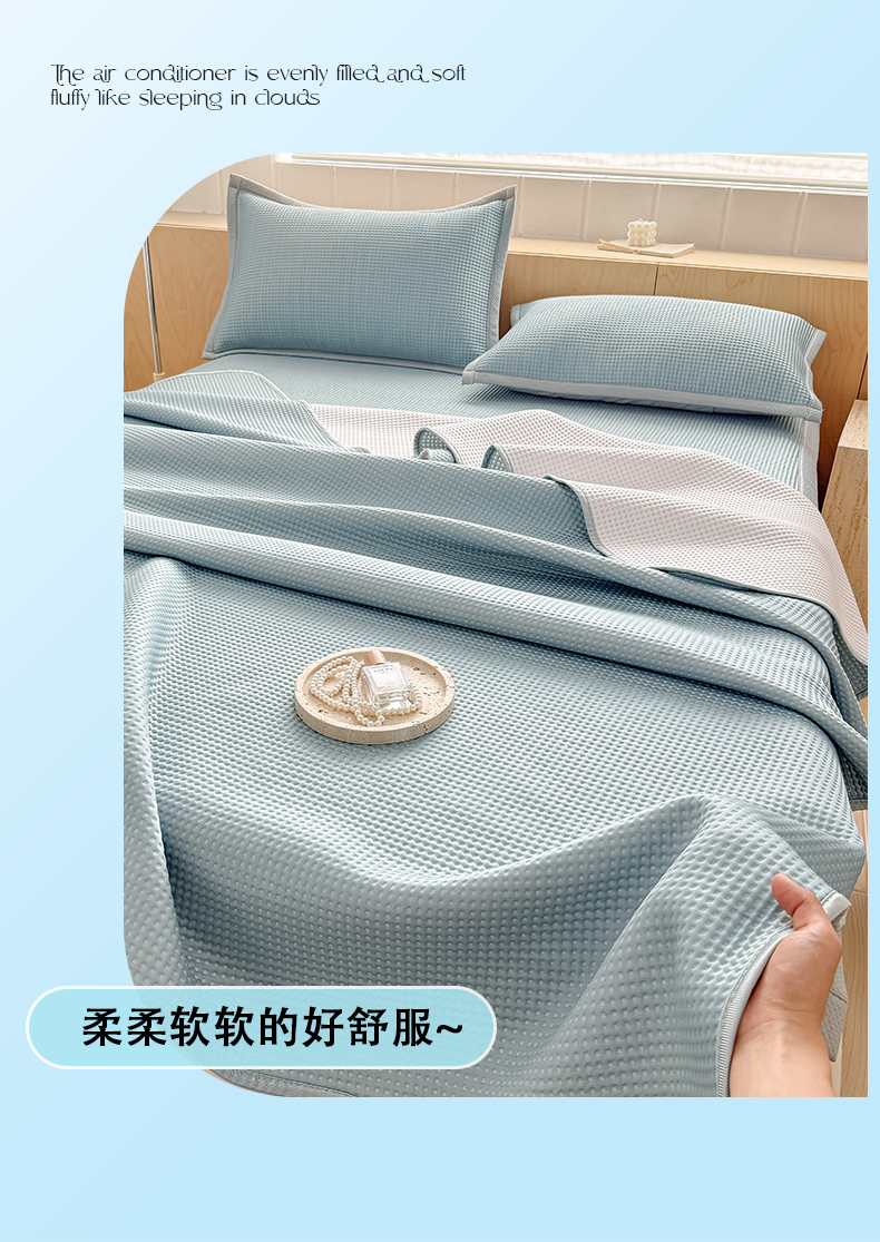 • 91家纺网 家纺一手货源 找家纺 金盛纺 2025新款A类华夫格冰豆豆夏被夏凉被空调被可机水洗 华夫格-兰