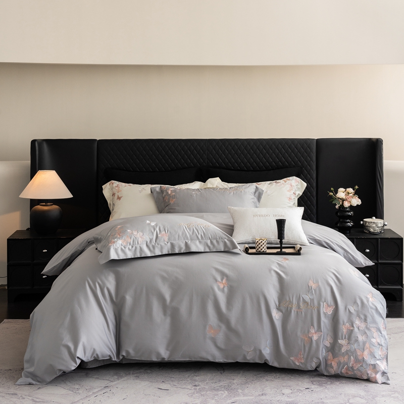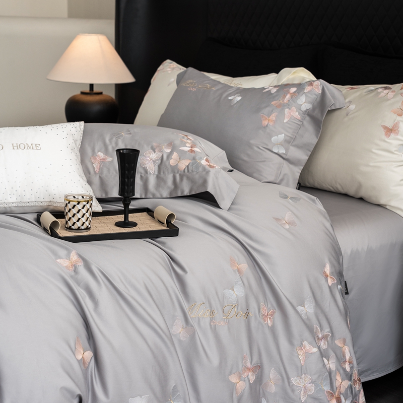 商品名称:馨蕊2025新款高精密刺绣轻奢风全棉四件套-微光 微光-高级灰