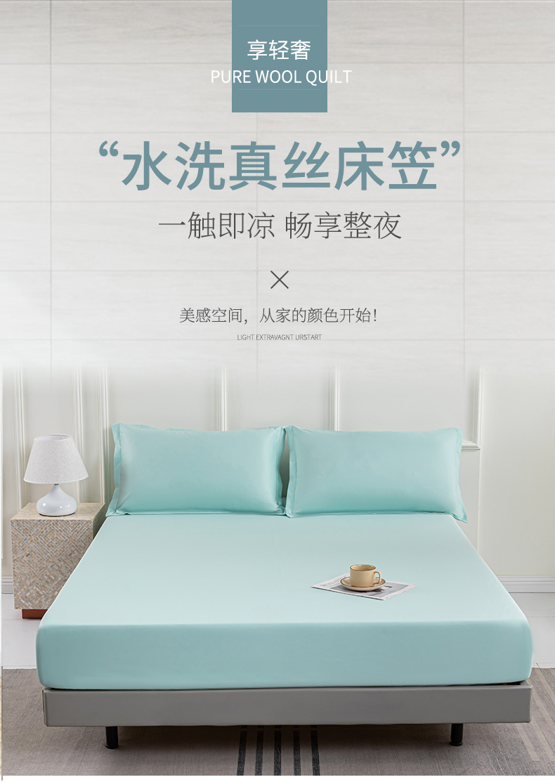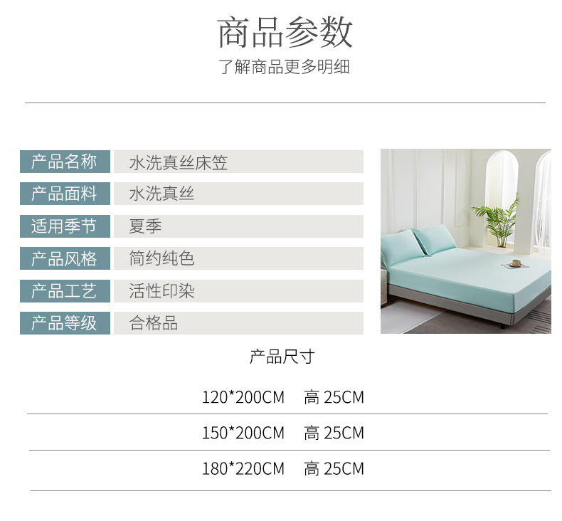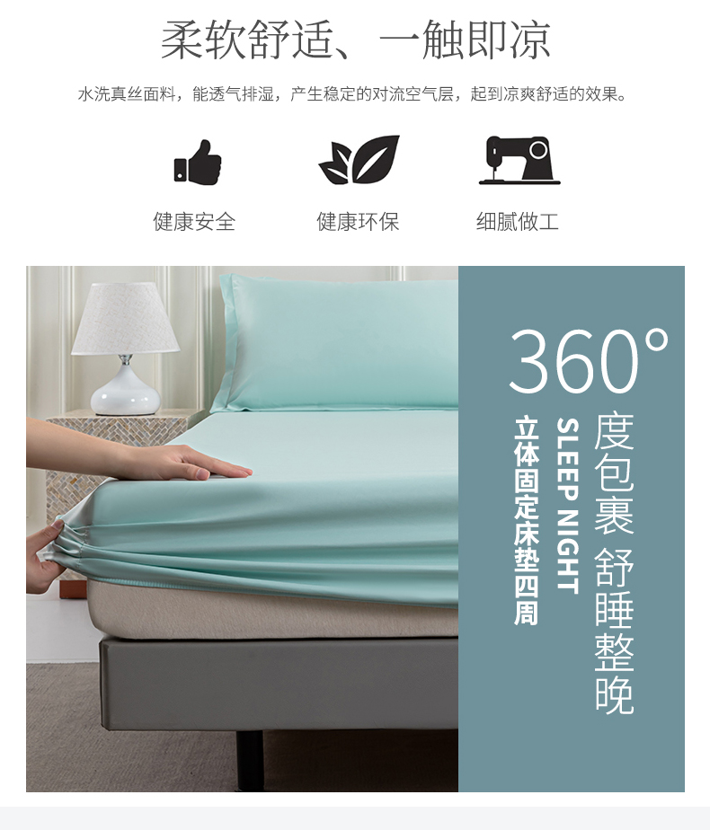 商品名称:潮邦创意家居 2025新款亲肤活性印染水洗真丝床垫凉席单床笠 薄荷绿