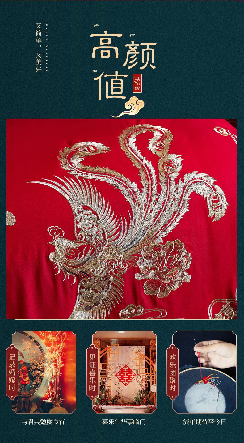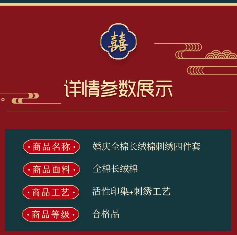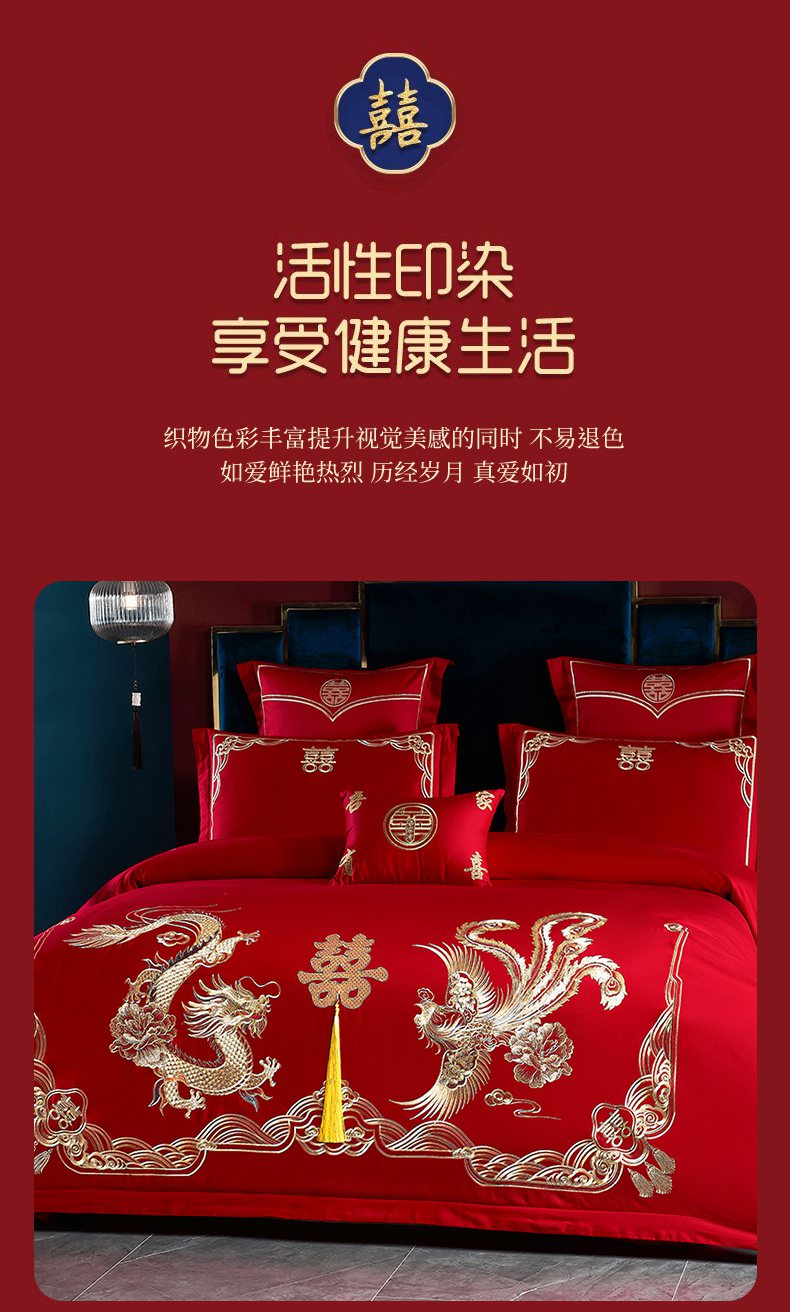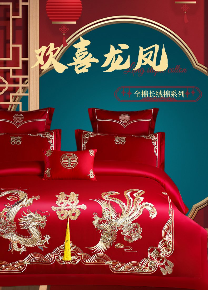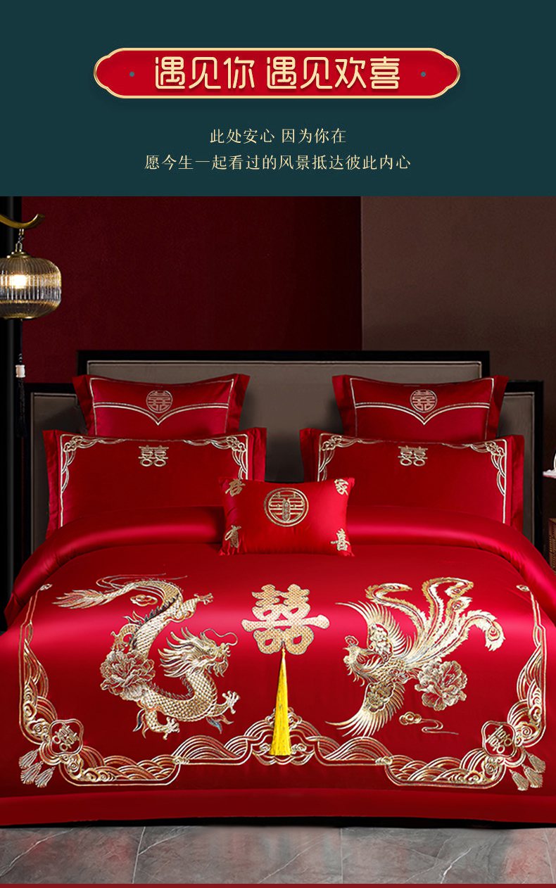 当前位置: 91家纺网 > 商品网购 > 床品套件 > 四件套 > 婚庆四件套 > 洽想家 2025新款全棉新中式刺绣婚庆四件套多件套(控价销售最低不低于288元) 欢喜龙凤