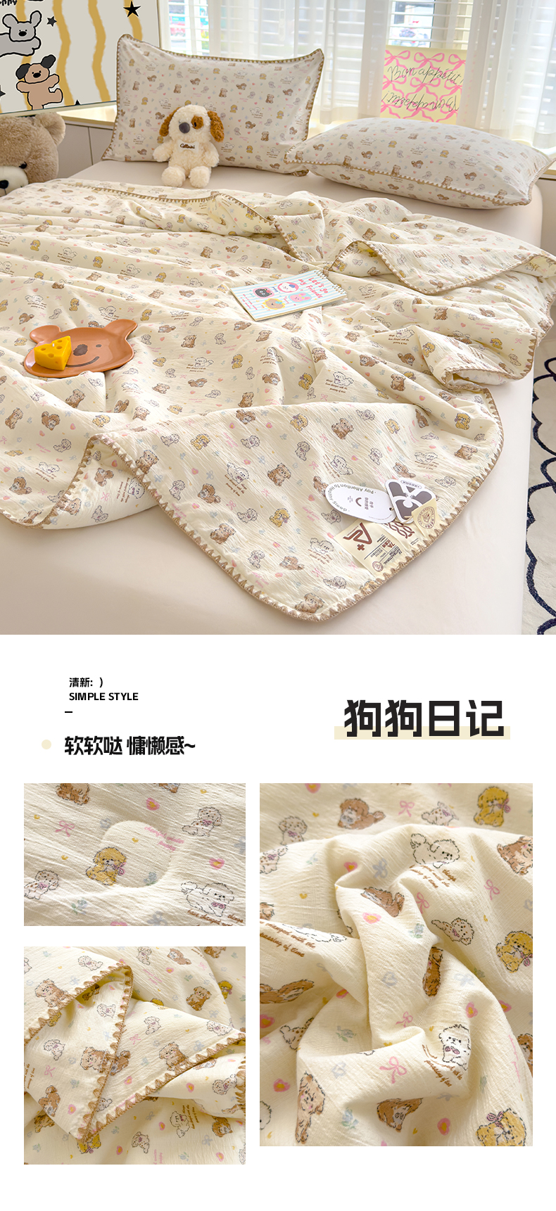 商品名称:星巴k家纺 2025新款贝壳绣三角针花边工艺款贝壳边夏被夏凉被空调被四件套【可提供买家秀】 狗狗日记