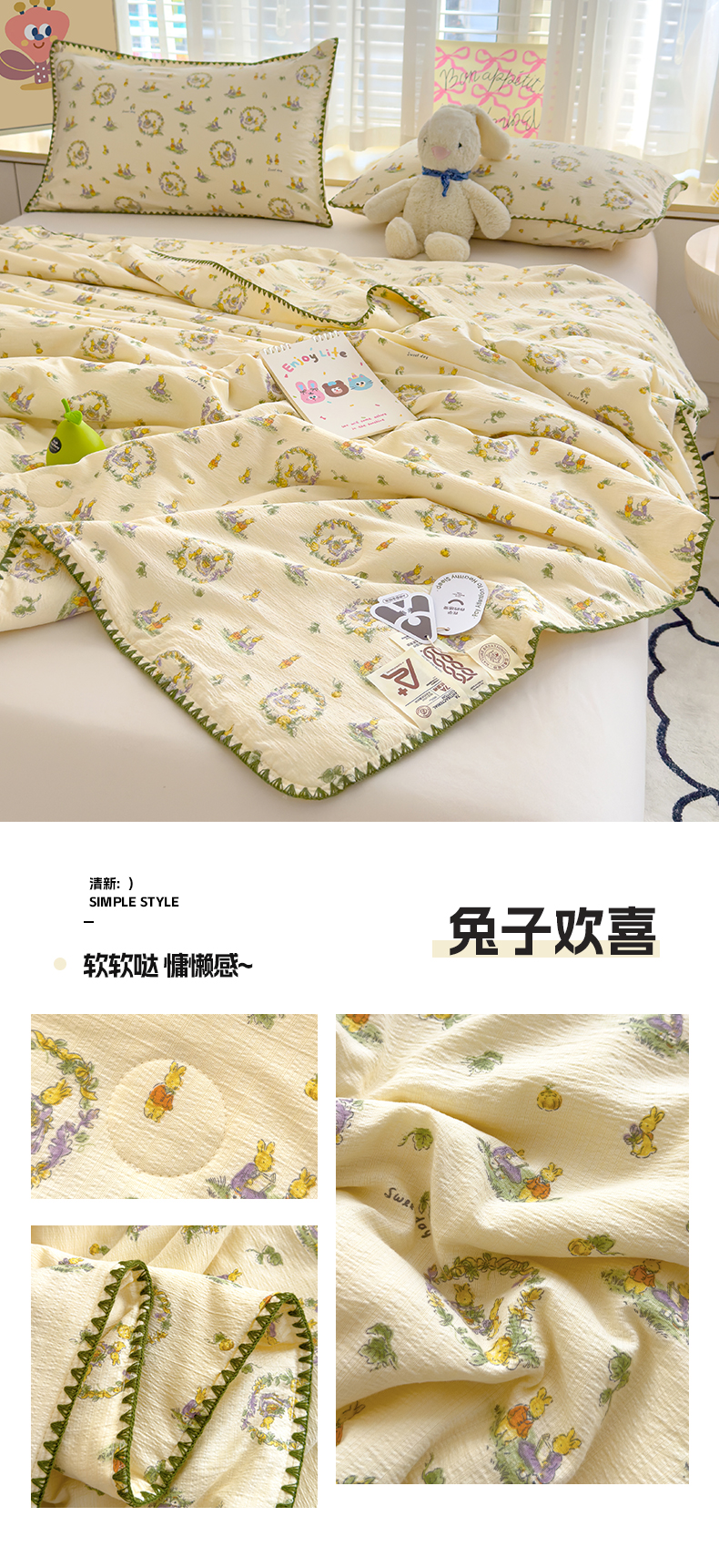星巴k家纺 2025新款贝壳绣三角针花边工艺款贝壳边夏被夏凉被空调被四件套【可提供买家秀】 兔子欢喜