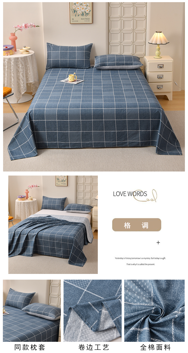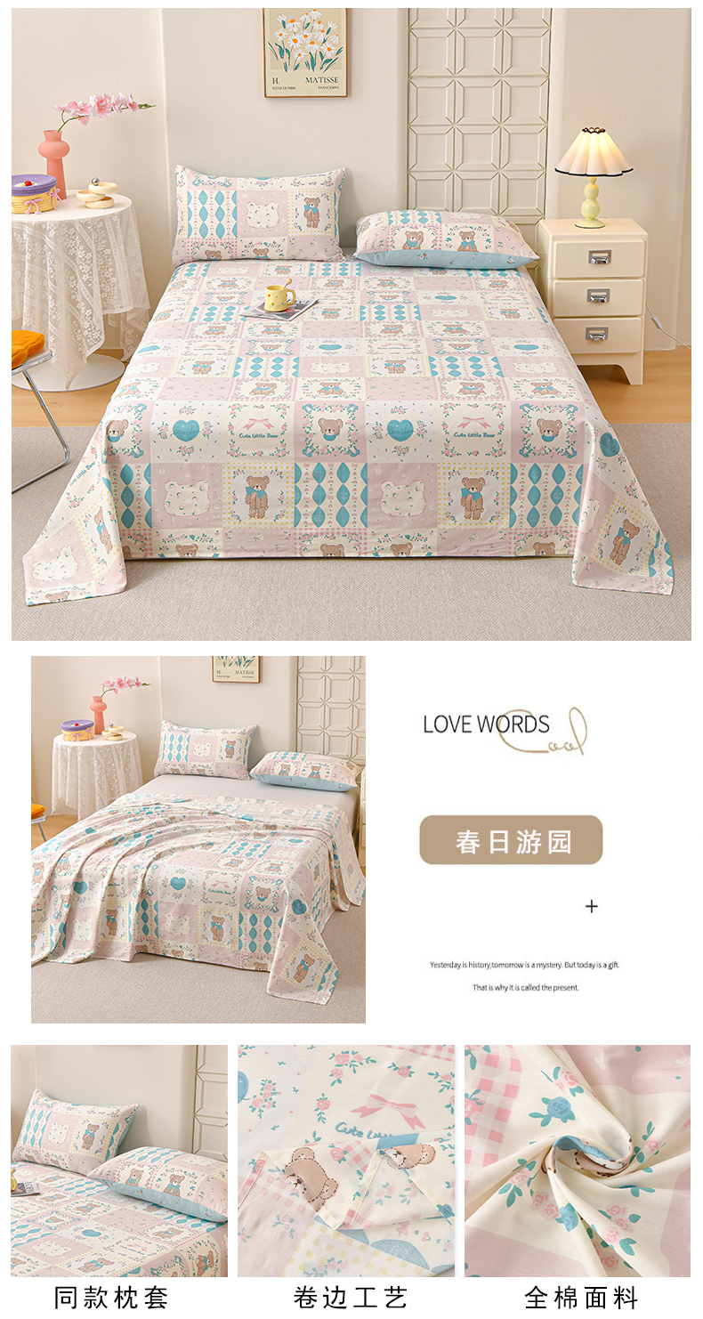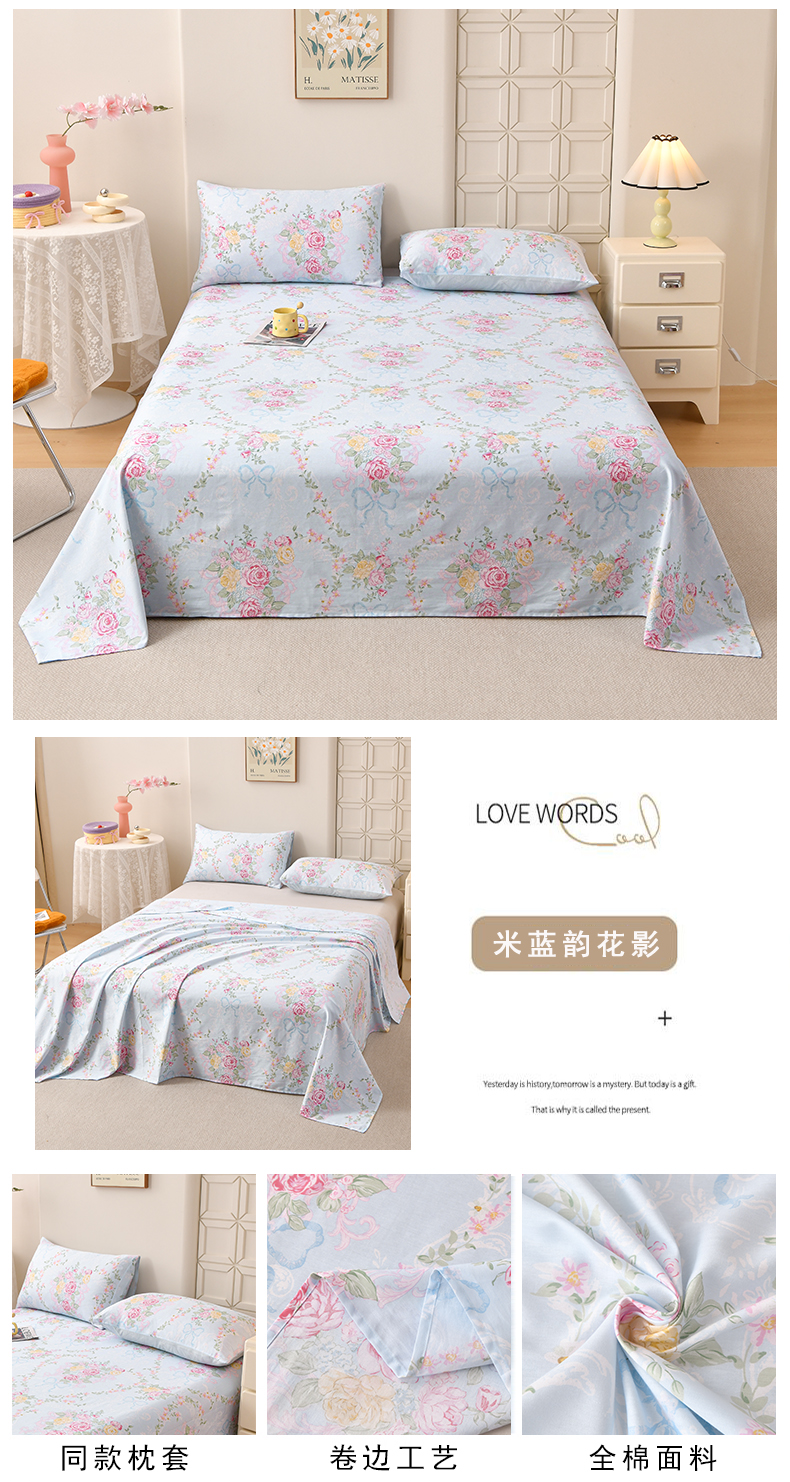 商品名称:(总)宇彬家纺 2025直播新款13070全棉纯棉印花双人单床单枕套三件套喷气小清新简约学生被单