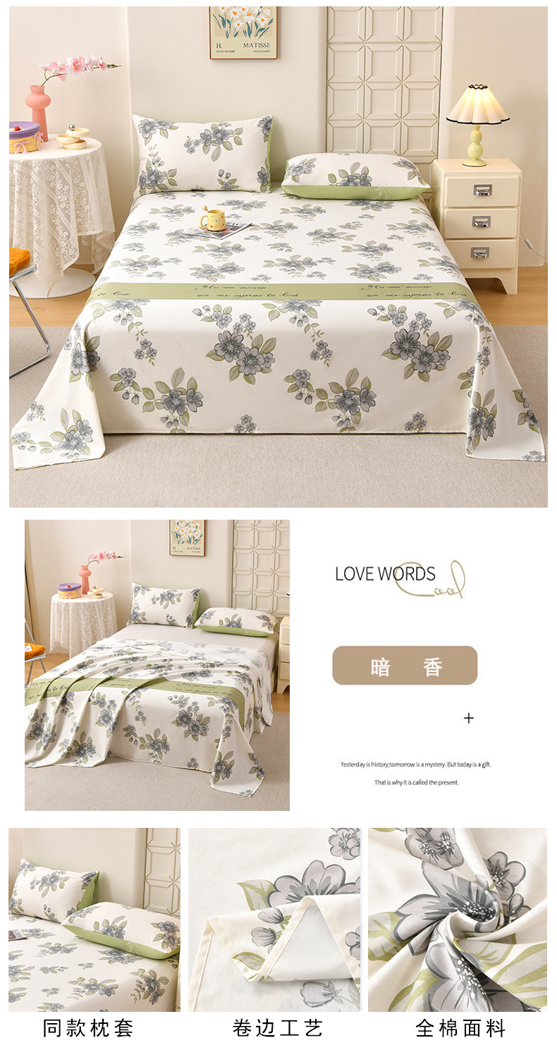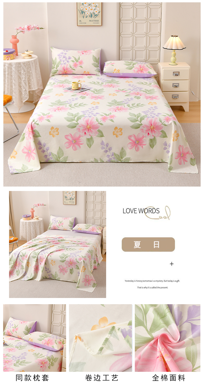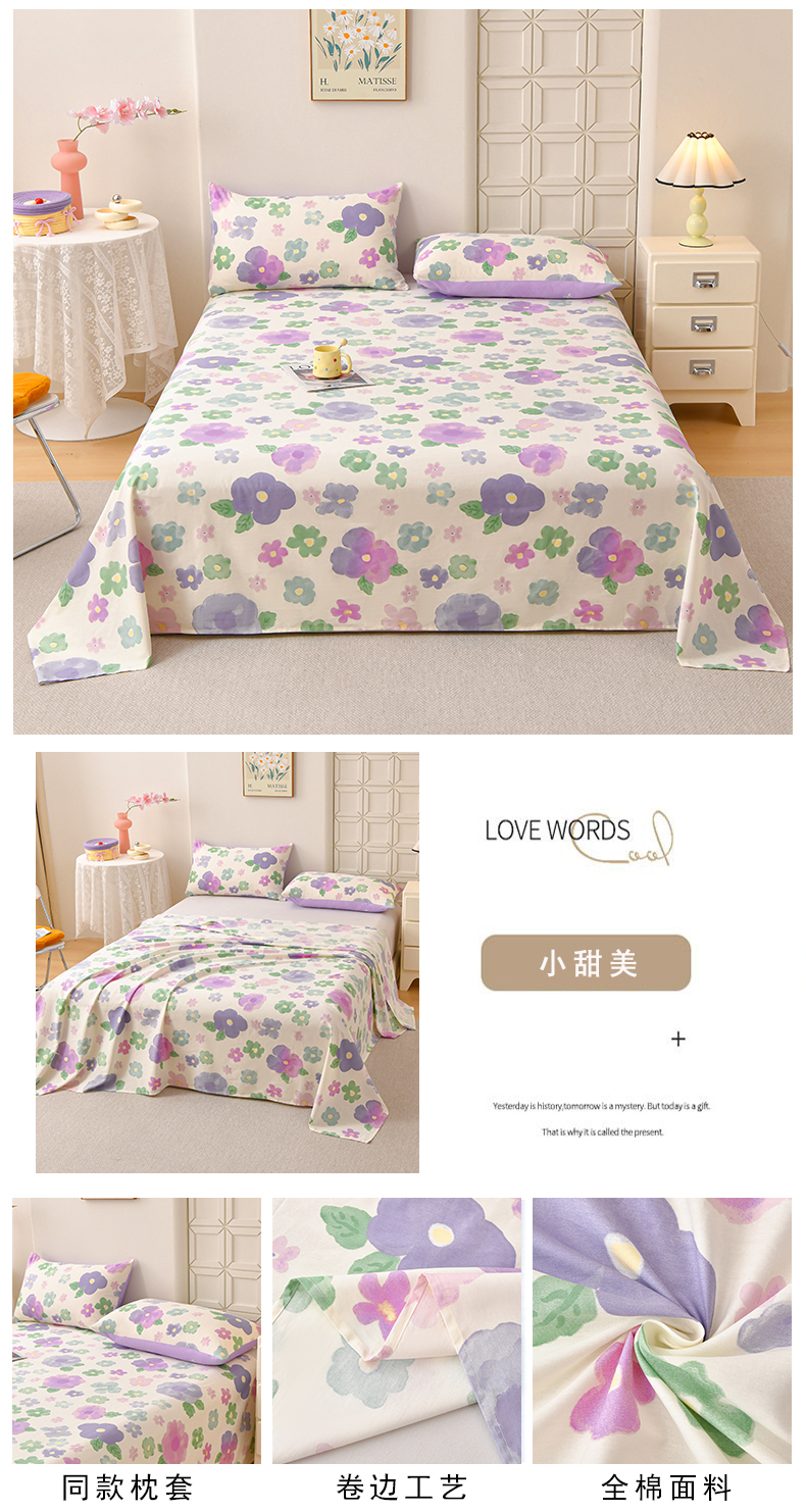 商品名称:(总)宇彬家纺 2025直播新款13070全棉纯棉印花双人单床单枕套三件套喷气小清新简约学生被单