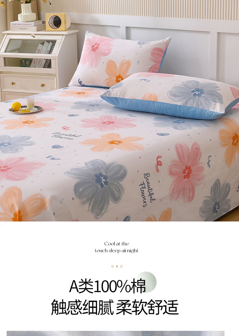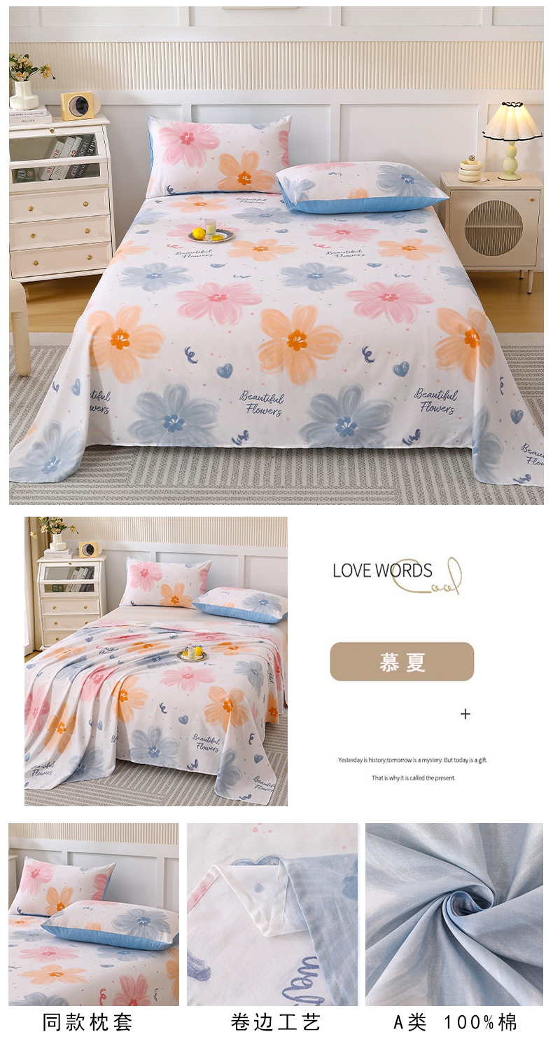 宇彬家纺 2025直播新款13070全棉纯棉印花双人单床单枕套三件套喷气小清新简约学生被单 绅士