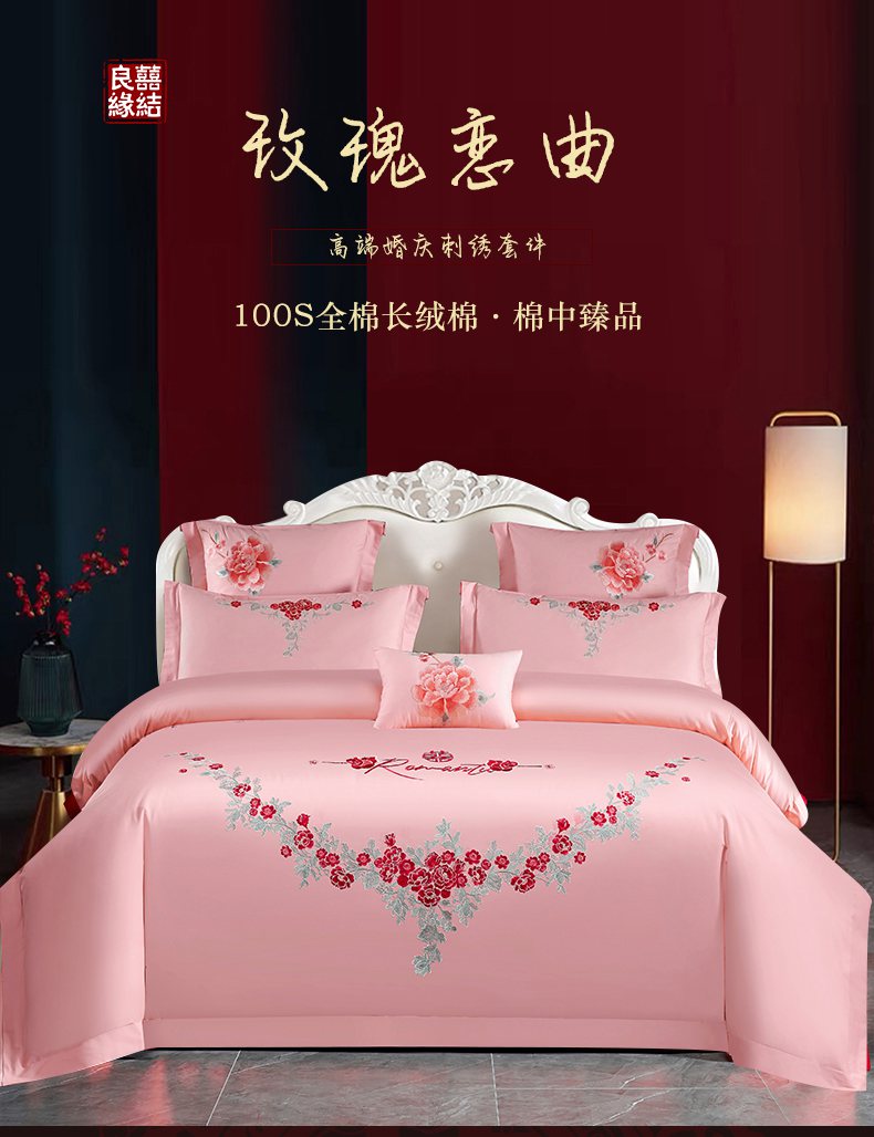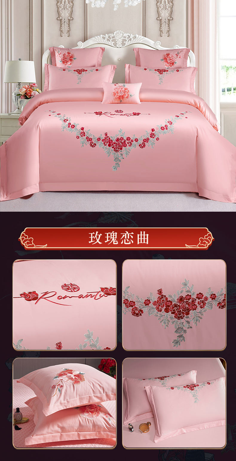 当前位置: 91家纺网 > 商品网购 > 床品套件 > 四件套 > 婚庆四件套 > 洽想家 2025新款全棉刺绣粉玉色婚庆四件套多件套(控价销售最低不低于288元) 玫瑰恋曲